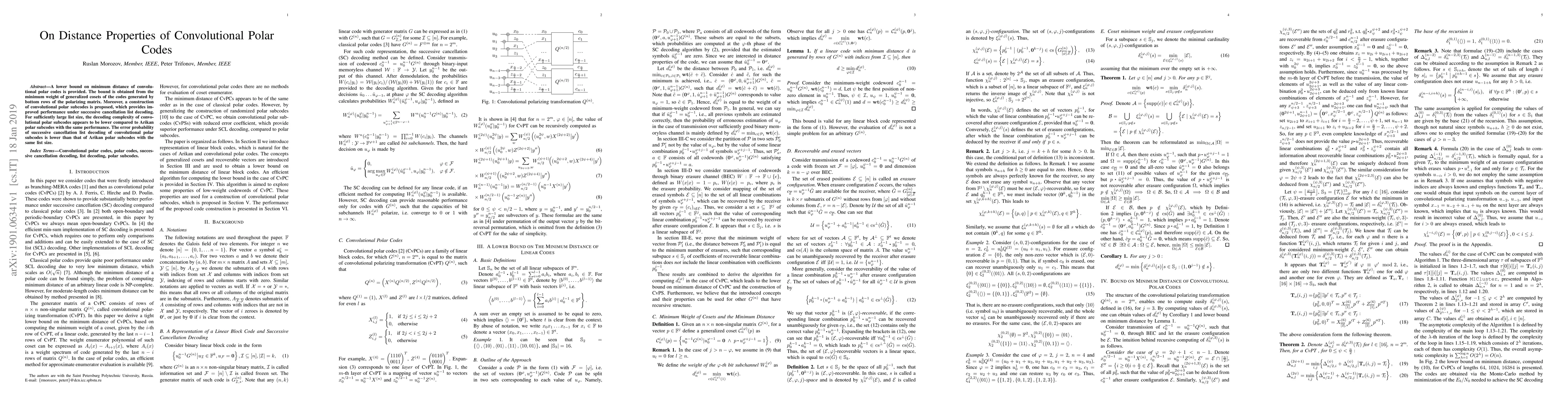 A lower bound on minimum distance of convolutional polar codes is provided. The bound is obtained from the minimum weight of generalized cosets of the codes generated by bottom rows of the polarizing matrix. Moreover, a construction of convolutional polar subcodes is proposed, which provides improved performance under successive cancellation list decoding. For sufficiently large list size, the decoding complexity of convolutional polar subcodes appears to be lower compared to Arikan polar subcodes with the same performance. The error probability of successive cancellation list decoding of convolutional polar subcodes is lower than that of Arikan polar subcodes with the same list size.