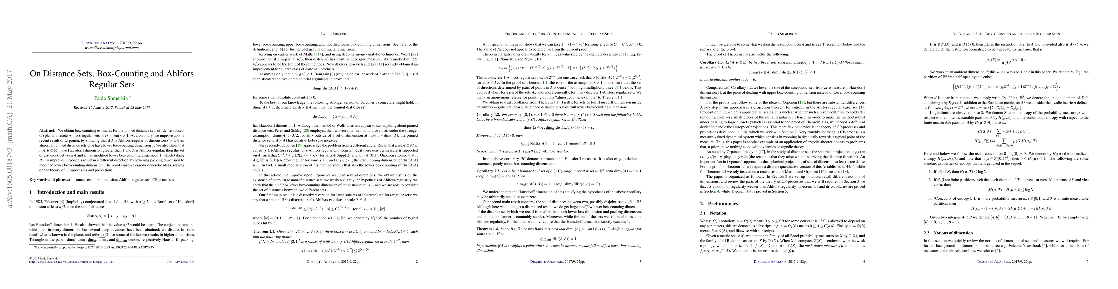 We obtain box-counting estimates for the pinned distance sets of (dense subsets of) planar discrete Ahlfors-regular sets of exponent $s>1$. As a corollary, we improve upon a recent result of Orponen, by showing that if $A$ is Ahlfors-regular of dimension $s>1$, then almost all pinned distance sets of $A$ have lower box-counting dimension $1$. We also show that if $A,B\subset\mathbb{R}^2$ have Hausdorff dimension $>1$ and $A$ is Ahlfors-regular, then the set of distances between $A$ and $B$ has modified lower box-counting dimension $1$, which taking $B=A$ improves Orponen's result in a different direction, by lowering packing dimension to modified lower box-counting dimension. The proofs involve ergodic-theoretic ideas, relying on the theory of CP-processes and projections.