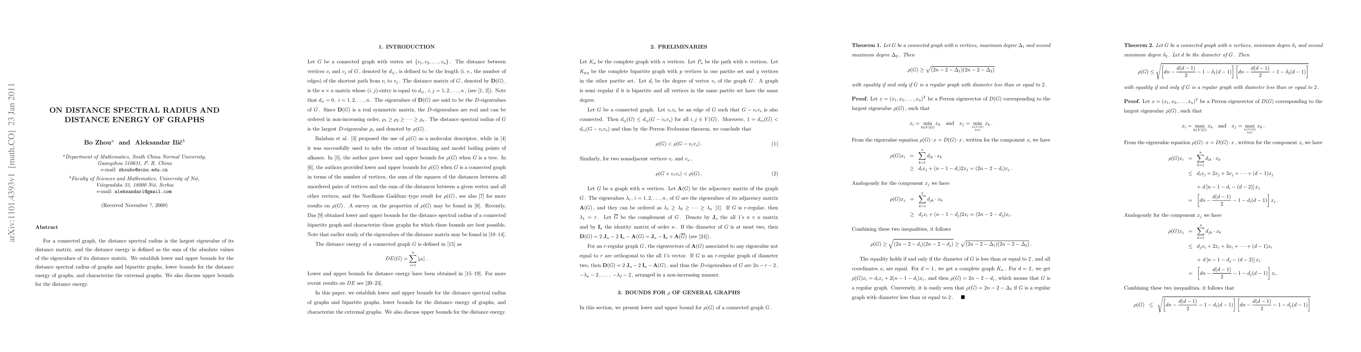 This paper establishes bounds for the distance spectral radius and distance energy of graphs, including extremal characterizations and discusses upper bounds for bipartite graphs. It focuses on connected graphs and their distance matrices.