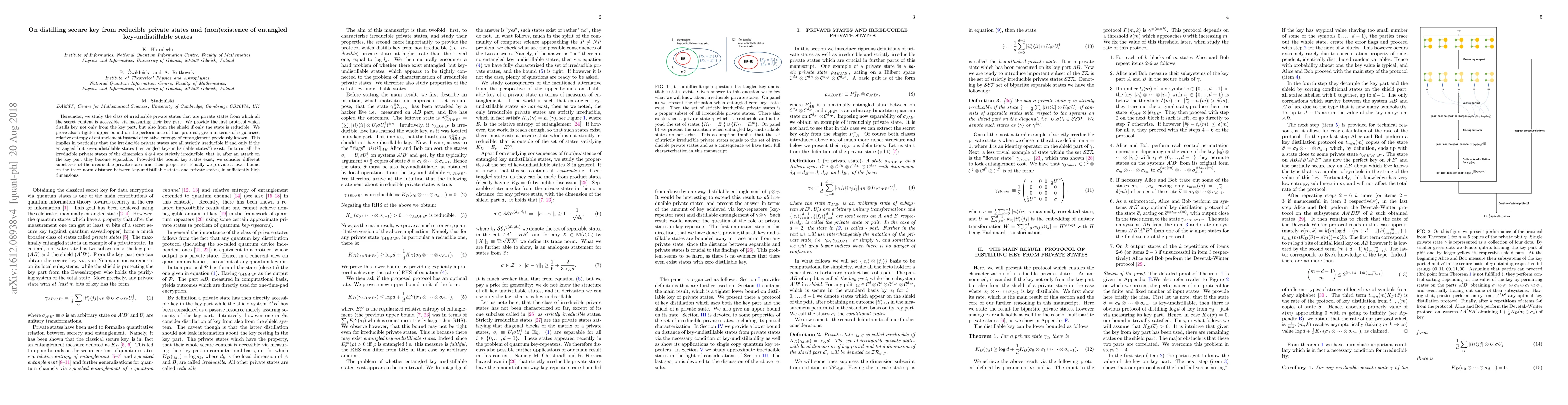 This paper introduces a protocol for distilling secure keys from reducible private states and discusses the non-existence of entangled key-undistillable states. It establishes tighter bounds on protocol performance and proves that irreducible private states are strictly irreducible if entangled key-undistillable states do not exist.