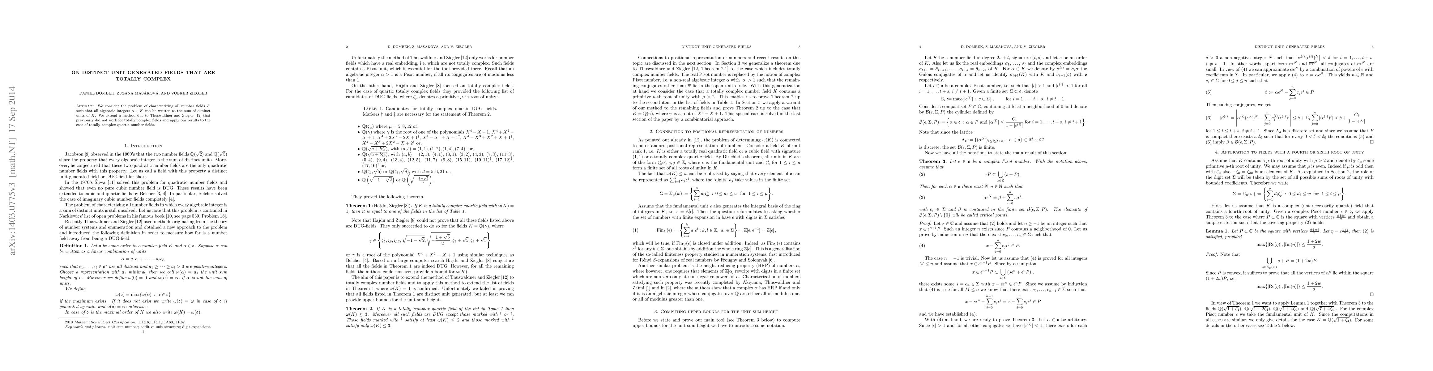 We consider the problem of characterizing all number fields $K$ such that all algebraic integers $\alpha\in K$ can be written as the sum of distinct units of $K$. We extend a method due to Thuswaldner and Ziegler that previously did not work for totally complex fields and apply our results to the case of totally complex quartic number fields.