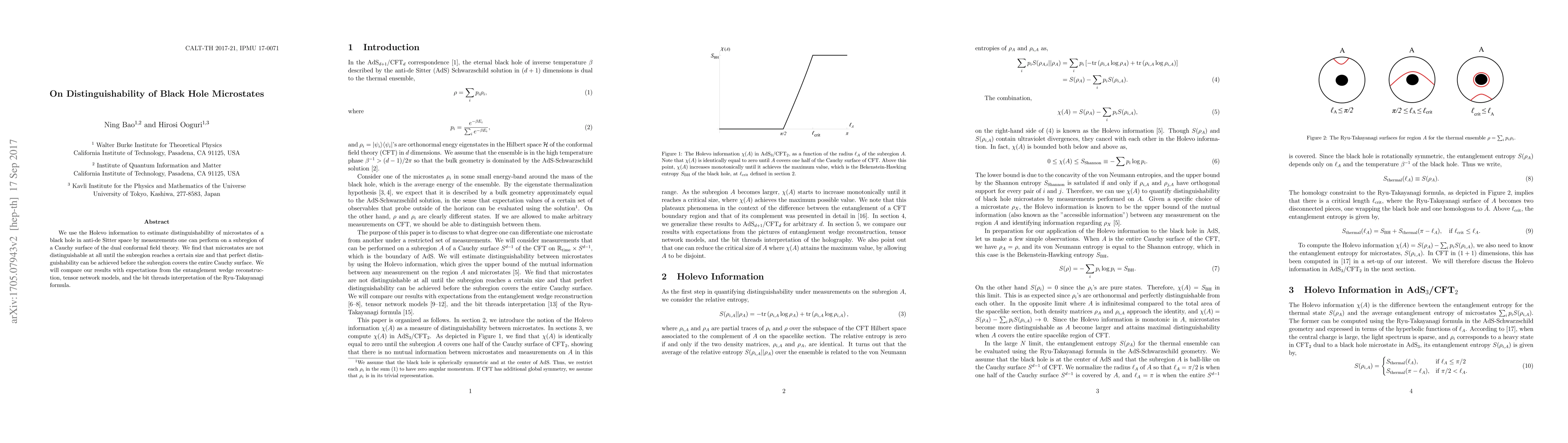 This paper investigates the distinguishability of black hole microstates using the Holevo information, finding that microstates become distinguishable only when a subregion of the dual conformal field theory reaches a certain size, and perfect distinguishability can be achieved before covering the entire Cauchy surface. The results are compared with predictions from entanglement wedge reconstruction, tensor network models, and the bit threads interpretation of the Ryu-Takayanagi formula.