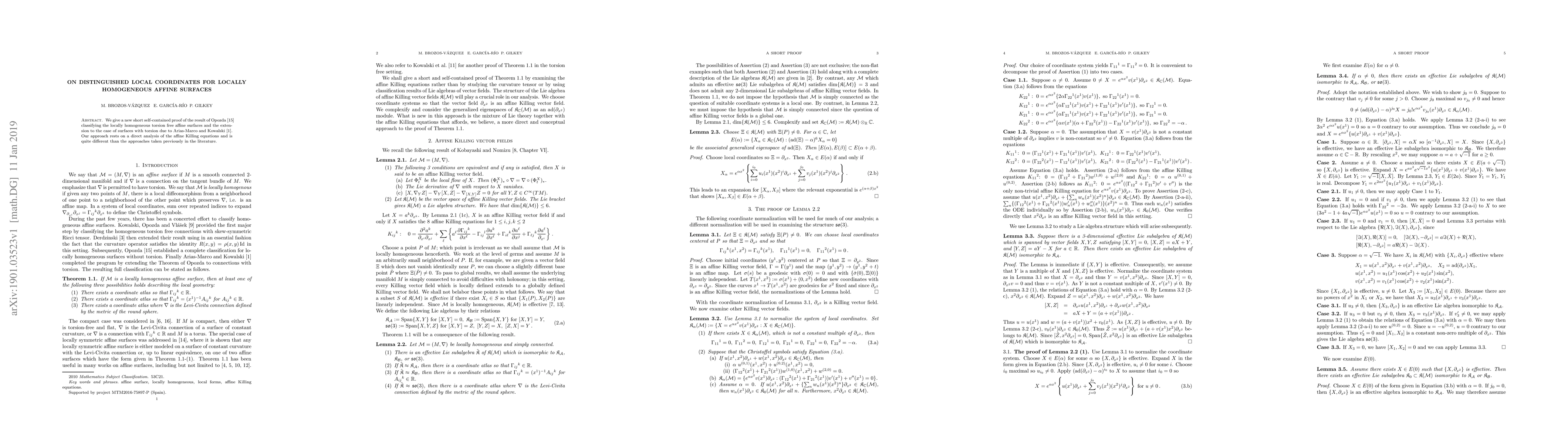 We give a new short self-contained proof of the result of Opozda [B. Opozda, A classification of locally homogeneous connections on 2-dimensional manifolds, Differential Geom. Appl. 21 (2004), 173-198.] classifying the locally homogeneous torsion free affine surfaces and the extension to the case of surfaces with torsion due to Arias-Marco and Kowalski [T. Arias-Marco and O. Kowalski, Classification of locally homogeneous linear connections with arbitrary torsion on 2-dimensional manifolds, Monatsh. Math. 153 (2008), 1-18.]. Our approach rests on a direct analysis of the affine Killing equations and is quite different than the approaches taken previously in the literature.