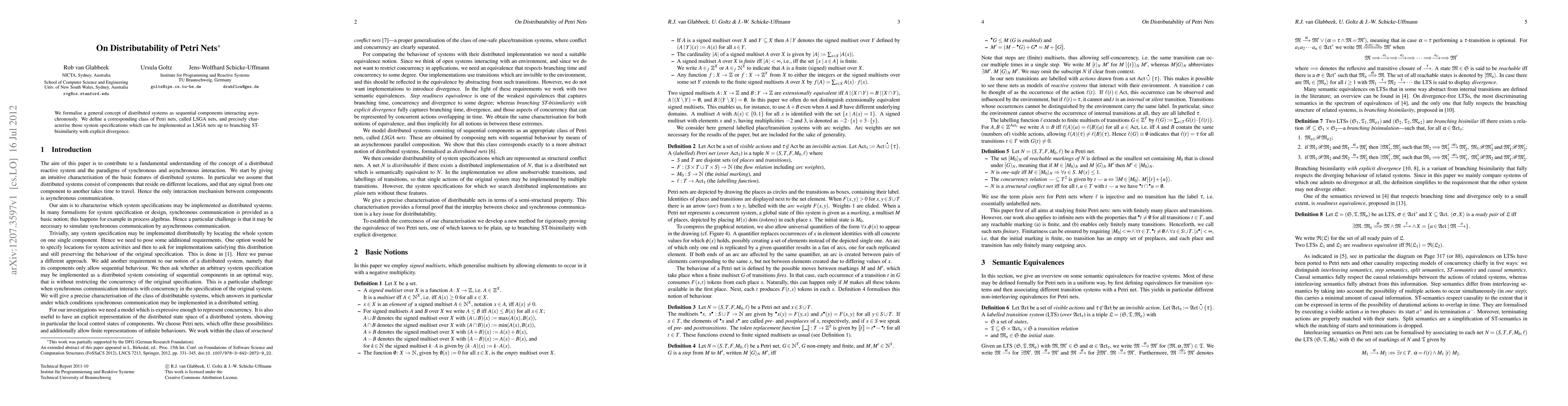 We formalise a general concept of distributed systems as sequential components interacting asynchronously. We define a corresponding class of Petri nets, called LSGA nets, and precisely characterise those system specifications which can be implemented as LSGA nets up to branching ST-bisimilarity with explicit divergence.