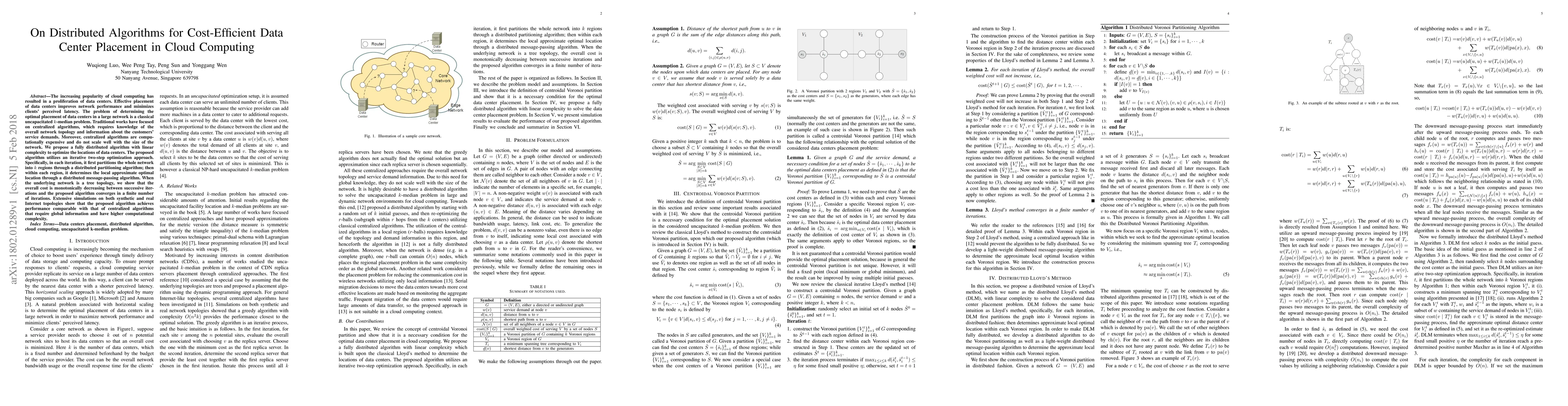 The increasing popularity of cloud computing has resulted in a proliferation of data centers. Effective placement of data centers improves network performance and minimizes clients' perceived latency. The problem of determining the optimal placement of data centers in a large network is a classical uncapacitated $k$-median problem. Traditional works have focused on centralized algorithms, which requires knowledge of the overall network topology and information about the customers' service demands. Moreover, centralized algorithms are computationally expensive and do not scale well with the size of the network. We propose a fully distributed algorithm with linear complexity to optimize the locations of data centers. The proposed algorithm utilizes an iterative two-step optimization approach. Specifically, in each iteration, it first partitions the whole network into $k$ regions through a distributed partitioning algorithm; then within each region, it determines the local approximate optimal location through a distributed message-passing algorithm. When the underlying network is a tree topology, we show that the overall cost is monotonically decreasing between successive iterations and the proposed algorithm converges in a finite number of iterations. Extensive simulations on both synthetic and real Internet topologies show that the proposed algorithm achieves performance comparable with that of centralized algorithms that require global information and have higher computational complexity.