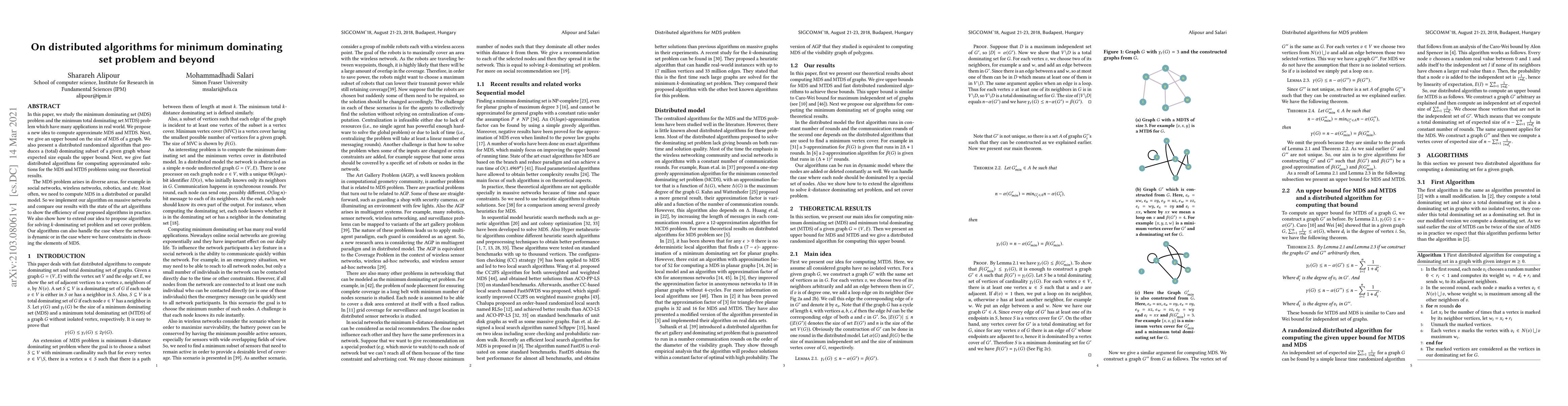 This paper proposes new distributed randomized algorithms for computing approximate solutions to the minimum dominating set and minimum total dominating set problems, demonstrating their efficiency on massive networks. The authors also extend their approach to solve the $k$-dominating set and set cover problems, showing the effectiveness in dynamic and constrained scenarios.