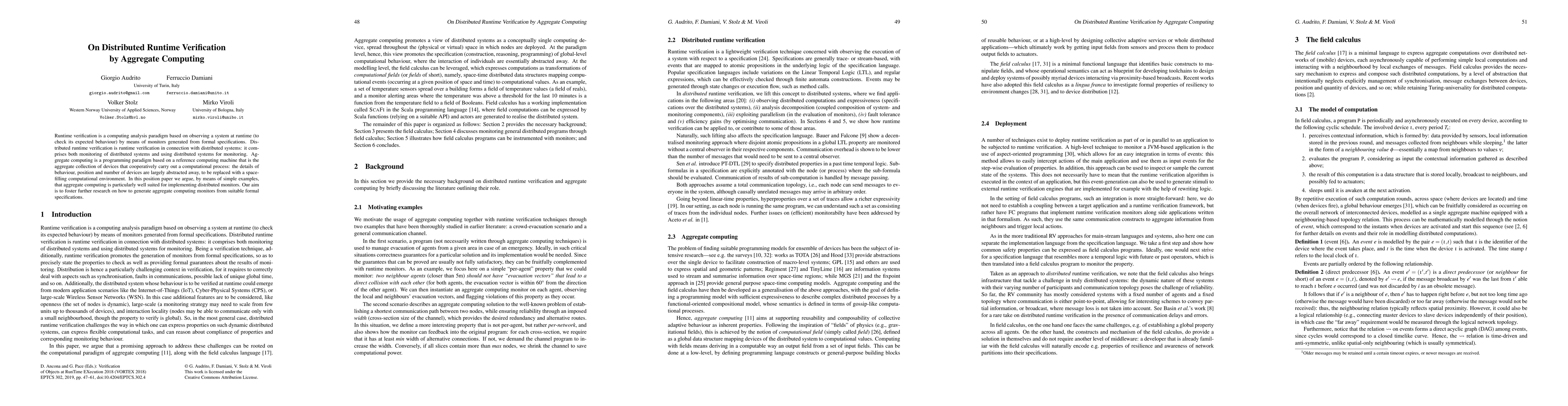 This paper explores the integration of distributed runtime verification with aggregate computing, arguing that aggregate computing's abstraction of device details makes it ideal for implementing distributed monitors. The authors aim to inspire further research on generating aggregate computing monitors from formal specifications.