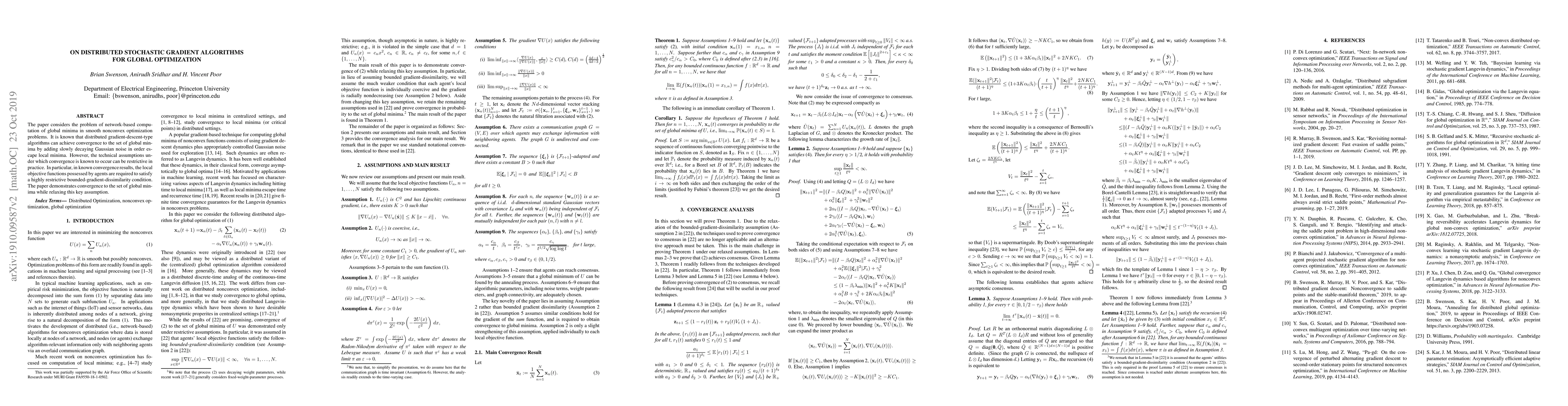 The paper considers the problem of network-based computation of global minima in smooth nonconvex optimization problems. It is known that distributed gradient-descent-type algorithms can achieve convergence to the set of global minima by adding slowly decaying Gaussian noise in order escape local minima. However, the technical assumptions under which convergence is known to occur can be restrictive in practice. In particular, in known convergence results, the local objective functions possessed by agents are required to satisfy a highly restrictive bounded-gradient-dissimilarity condition. The paper demonstrates convergence to the set of global minima while relaxing this key assumption.