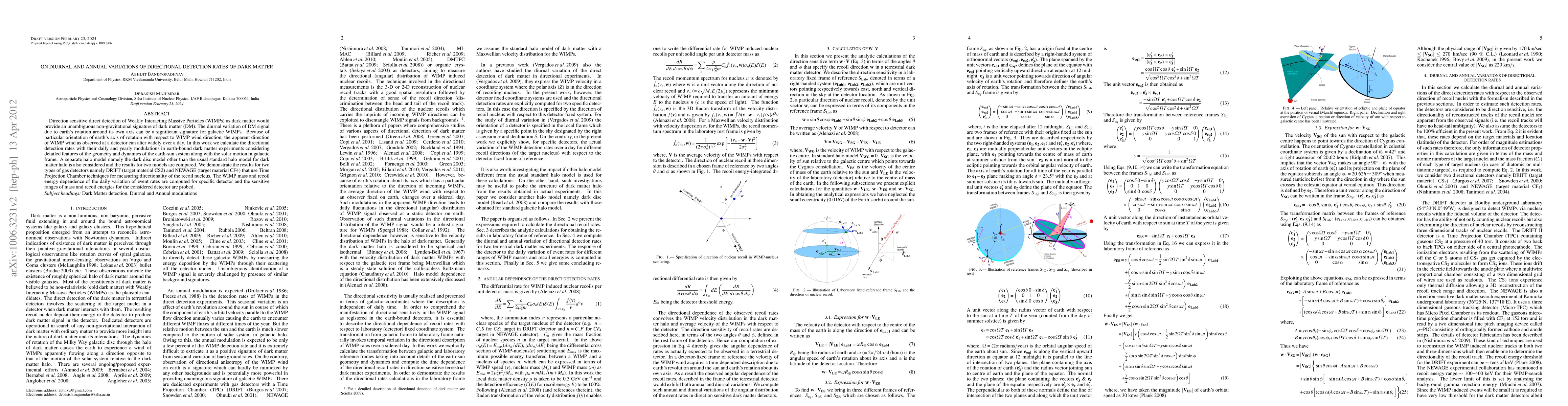 This paper investigates the diurnal and annual variations in directional detection rates of Weakly Interacting Massive Particles (WIMPs) as dark matter, considering the Earth's rotation and orbit. It compares detection rates using two gas detectors and explores different dark matter halo models, demonstrating the impact of WIMP mass and recoil energy on daily variations.