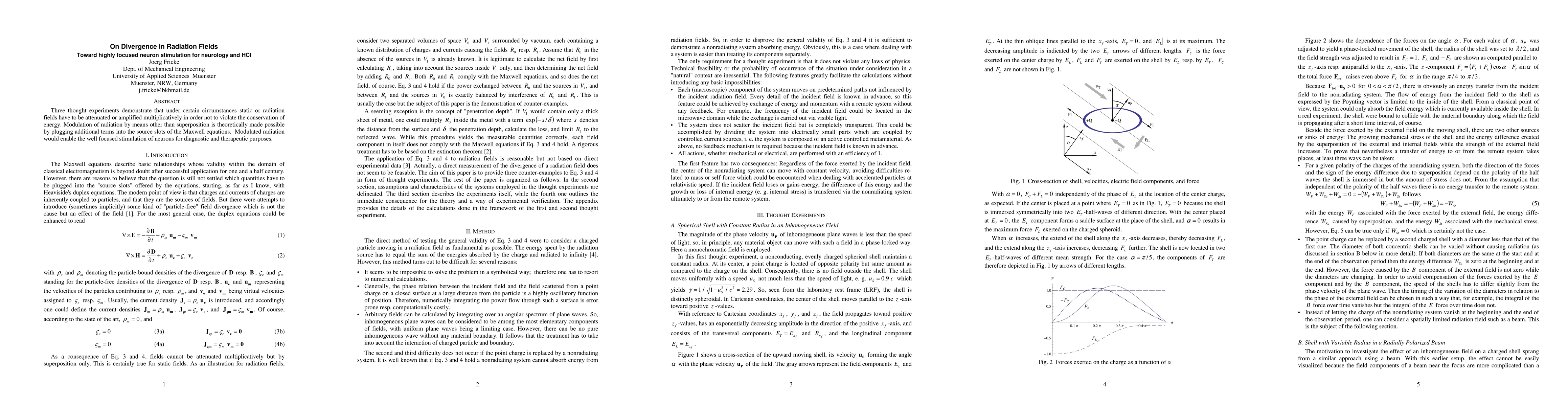 Three thought experiments demonstrate that under certain circumstances electromagnetic fields have to be attenuated or amplified multiplicatively in order not to violate the conservation of energy. Modulation of radiation by means other than superposition is theoretically made possible by plugging additional terms into the source slots of the Maxwell equations. Thus modulated radiation would enable the well focused stimulation of neurons for diagnostic and therapeutic purposes and for HCI applications.