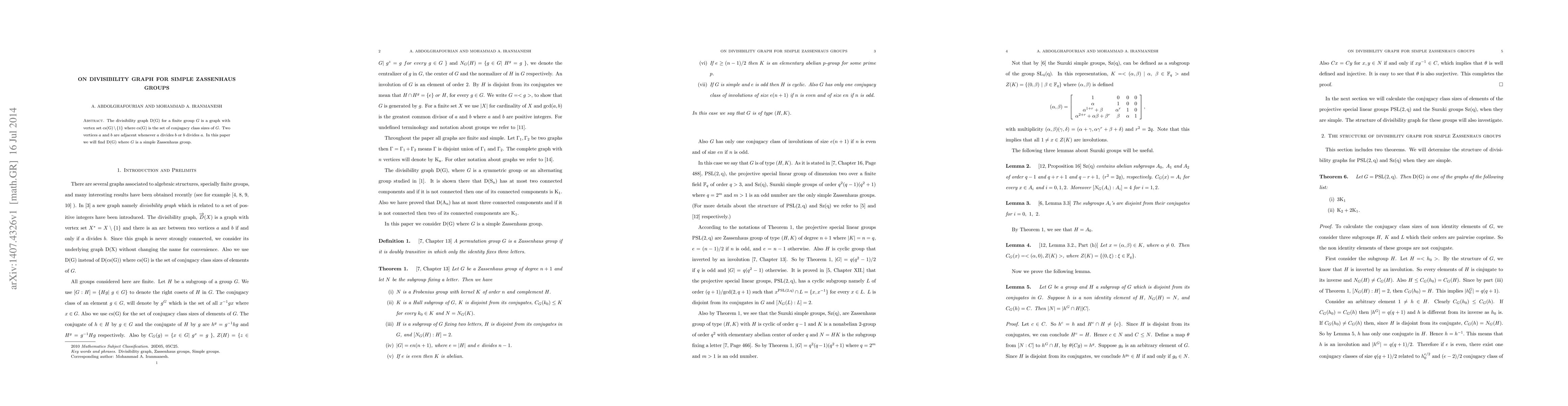 This paper investigates the divisibility graph $D(G)$ for simple Zassenhaus groups, where vertices represent conjugacy class sizes excluding 1, and edges connect pairs where one size divides the other. The study focuses on determining the structure of $D(G)$ for these specific groups.