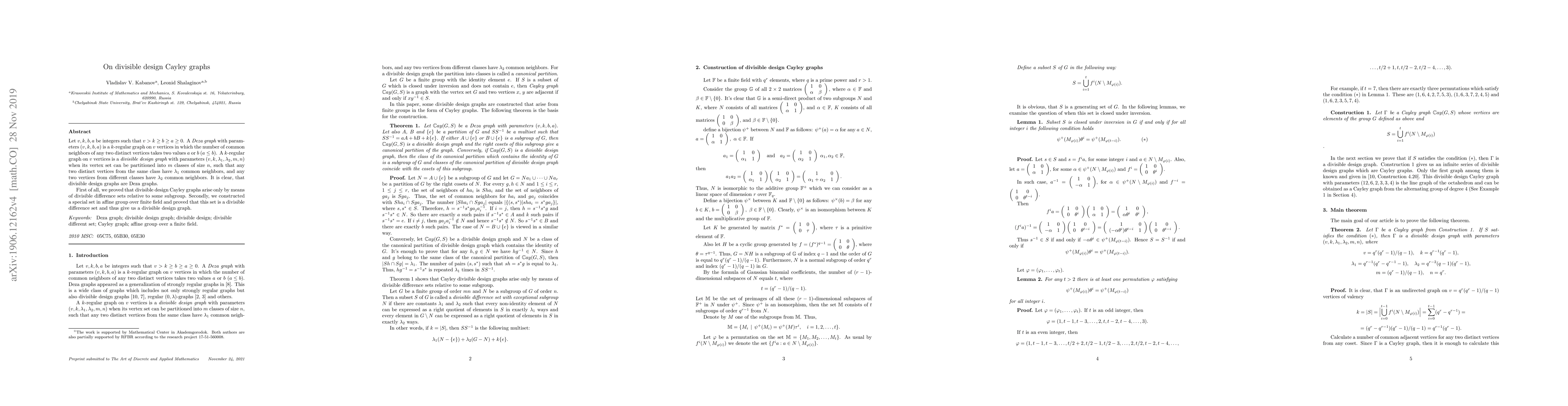 Summary: This paper introduces a method to construct an infinite series of divisible design graphs that are also Cayley graphs, expanding the understanding of their structural properties.
