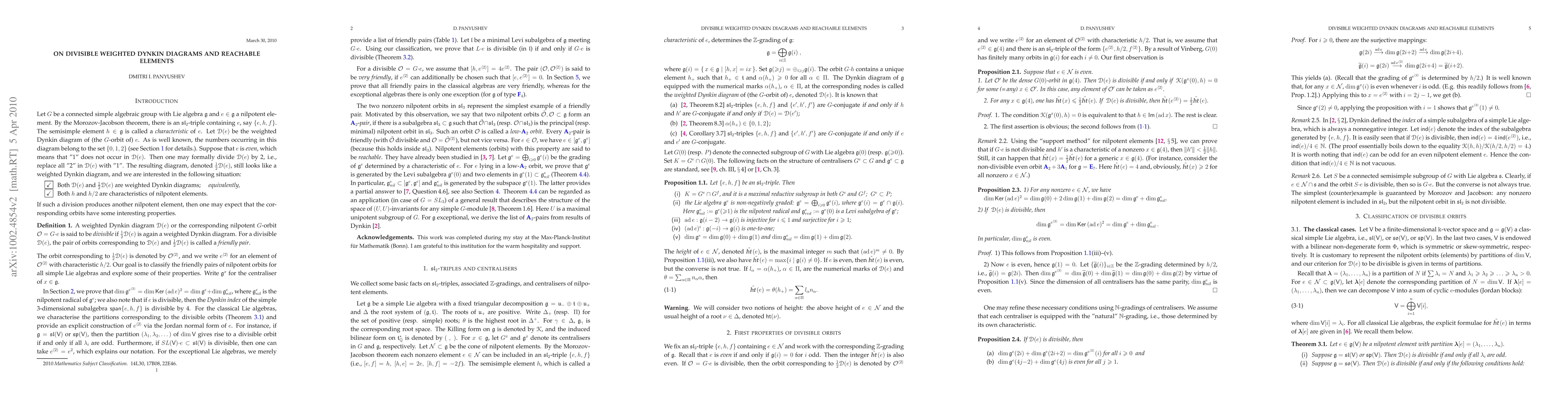 Let D(e) denote the weighted Dynkin diagram of a nilpotent element $e$ in complex simple Lie algebra $\g$. We say that D(e) is divisible if D(e)/2 is again a weighted Dynkin diagram. (That is, a necessary condition for divisibility is that $e$ is even.) The corresponding pair of nilpotent orbits is said to be friendly. In this note, we classify the friendly pairs and describe some of their properties. We also observe that any subalgebra sl(3) in $\g$ determines a friendly pair. Such pairs are called A2-pairs. It turns out that the centraliser of the lower orbit in an A2-pair has some remarkable properties. Let $Gx$ be such an orbit and $h$ a characteristic of $x$. Then $h$ determines the Z-grading of the centraliser $z=z(x)$. We prove that $z$ is generated by the Levi subalgebra $z(0)$ and two elements in $z(1)$. In particular, (1) the nilpotent radical of $z$ is generated by $z(1)$ and (2) $x\in [z,z]$. The nilpotent elements having the last property are called reachable.