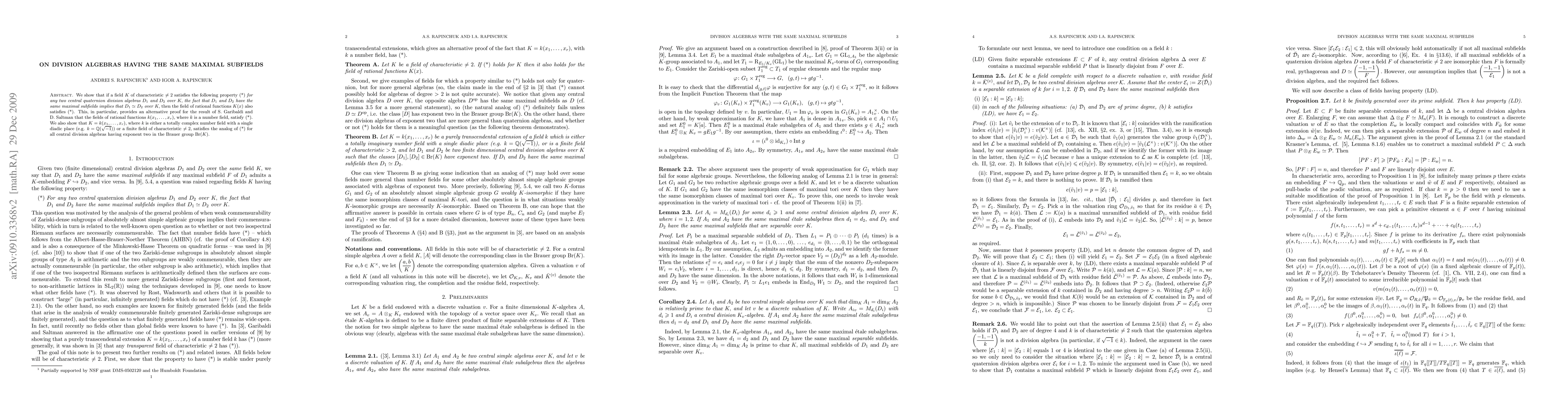 Summary: This paper explores conditions under which two finite-dimensional central division algebras over the same field are isomorphic when they share the same maximal subfields. It concludes that such isomorphisms often occur under specific constraints.