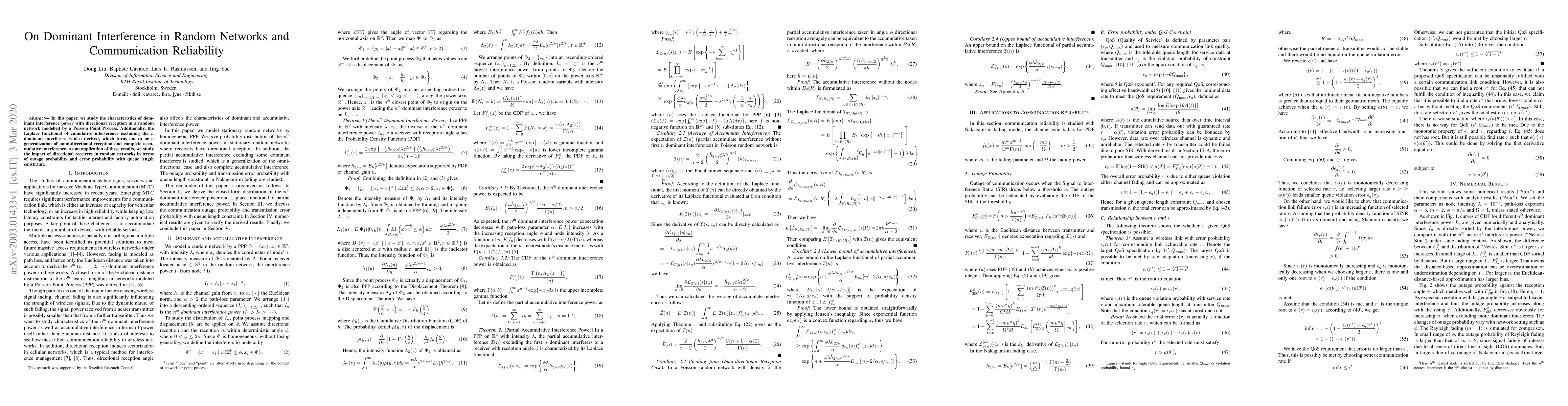 This research analyzes dominant interference in random networks using Poisson Point Process, deriving the Laplace functional of cumulative interference. It generalizes previous findings on omni-directional reception and complete accumulative interference, and examines the impact on outage and error probabilities with queue length constraints in directional receiver networks.