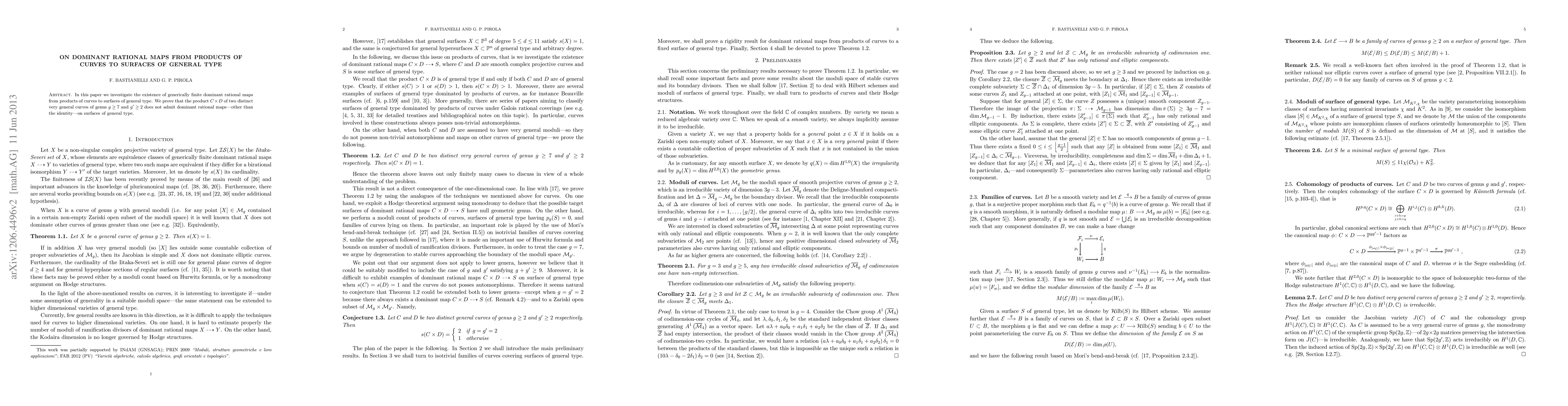 Summary: This research paper examines dominant rational maps from products of curves to surfaces of general type, finding that the product of two very general curves with specific genera does not allow such dominant maps to other general type surfaces.