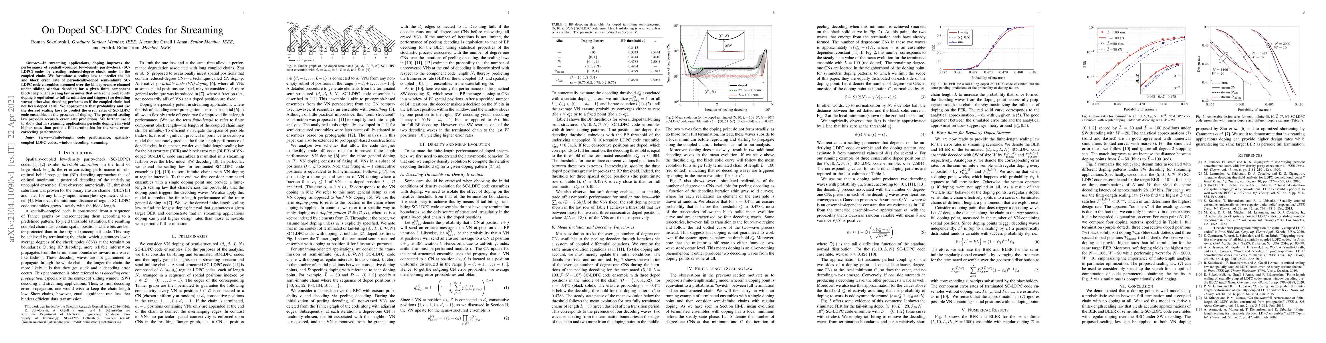 This paper explores the performance improvement of spatially-coupled low-density parity-check (SC-LDPC) codes in streaming applications through doping, which introduces reduced-degree check nodes. A scaling law is formulated to predict error rates for periodically-doped SC-LDPC codes over the binary erasure channel, showing that periodic doping can achieve higher streaming rates than full termination while maintaining similar error-correcting performance.