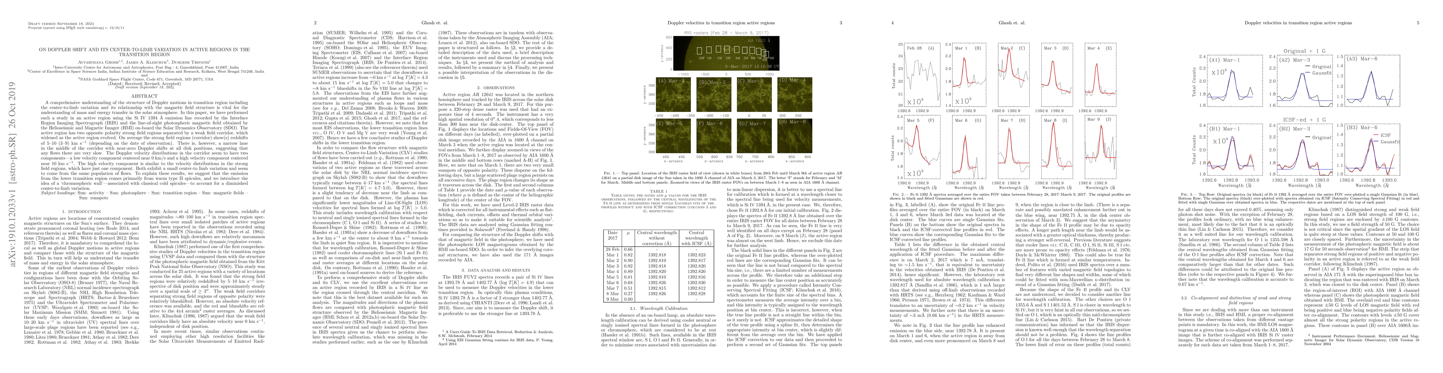This paper investigates Doppler shifts in the transition region of an active solar region using IRIS and HMI data, revealing redshifts in strong field regions and near-zero shifts in a corridor. It proposes a "chromospheric wall" to explain the minimal center-to-limb variation and suggests that warm spicules dominate the lower transition region emission.
