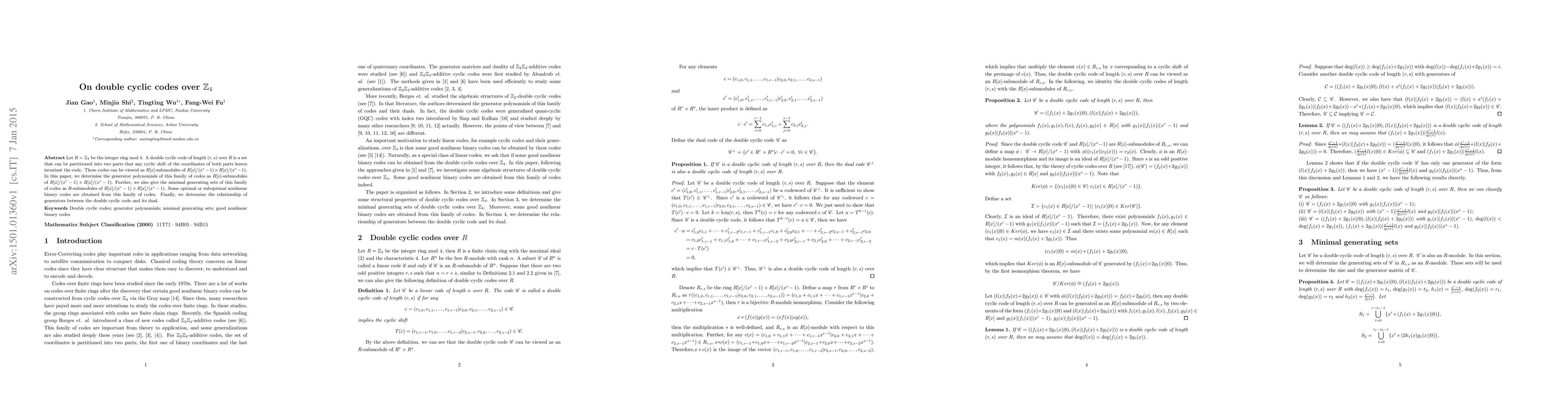 This paper investigates double cyclic codes over Z_4, determining generator polynomials and minimal generating sets for these codes in a specific ring module context. It also explores the relationship between generators of the code and its dual.