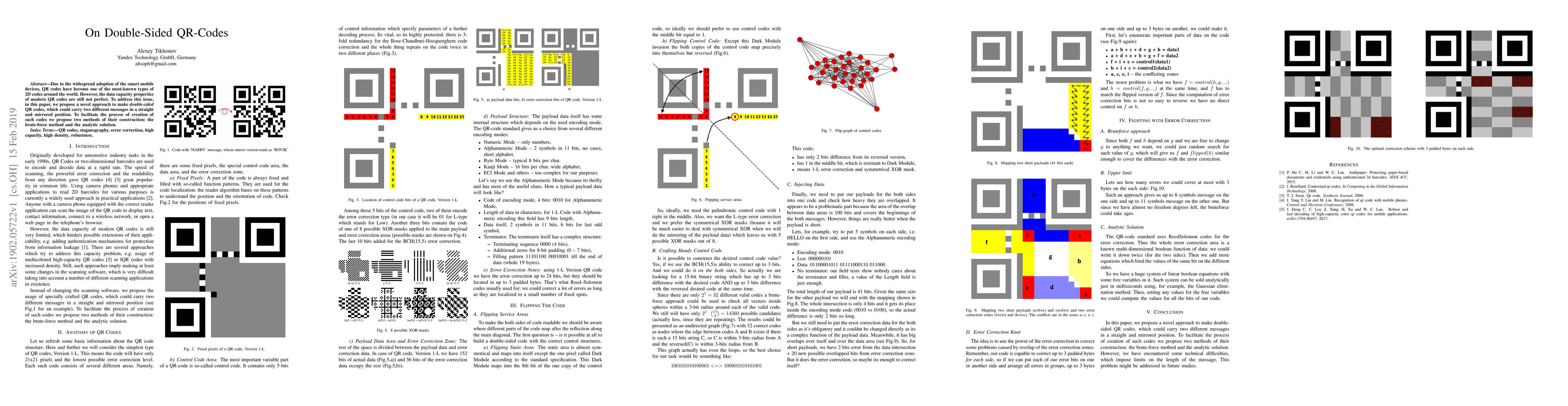 Due to the widespread adoption of the smart mobile devices, QR codes have become one of the most-known types of 2D codes around the world. However, the data capacity properties of modern QR codes are still not perfect. To address this issue, in this paper, we propose a novel approach to make double-sided QR codes, which could carry two different messages in a straight and mirrored position. To facilitate the process of creation of such codes we propose two methods of their construction: the brute-force method and the analytic solution.