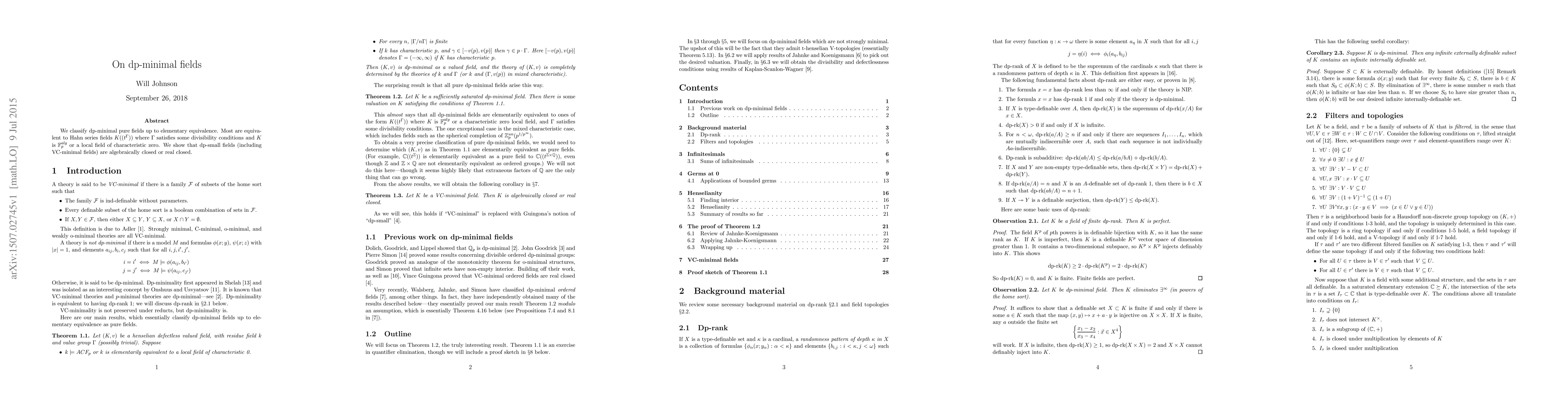 This paper classifies dp-minimal pure fields, showing they are equivalent to Hahn series fields under specific conditions, and demonstrates that dp-small fields are either algebraically closed or real closed.