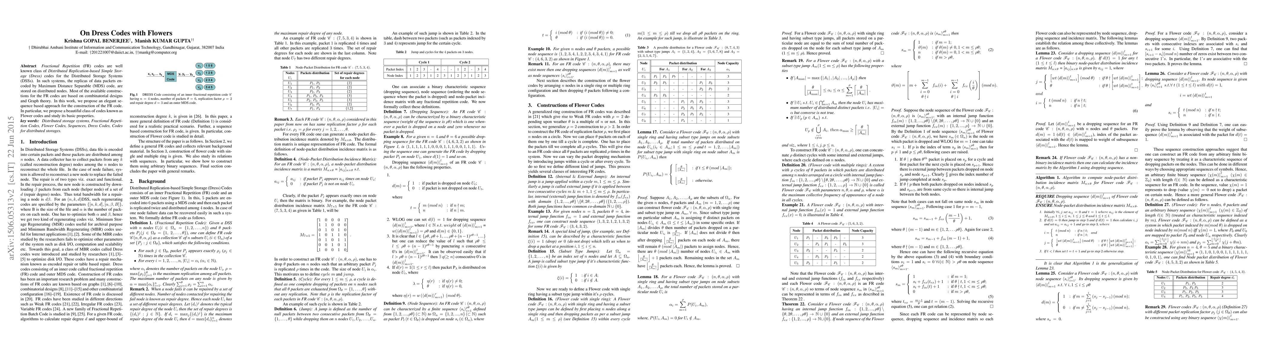 Fractional Repetition (FR) codes are well known class of Distributed Replication-based Simple Storage (Dress) codes for the Distributed Storage Systems (DSSs). In such systems, the replicas of data packets encoded by Maximum Distance Separable (MDS) code, are stored on distributed nodes. Most of the available constructions for the FR codes are based on combinatorial designs and Graph theory. In this work, we propose an elegant sequence based approach for the construction of the FR code. In particular, we propose a beautiful class of codes known as Flower codes and study its basic properties.