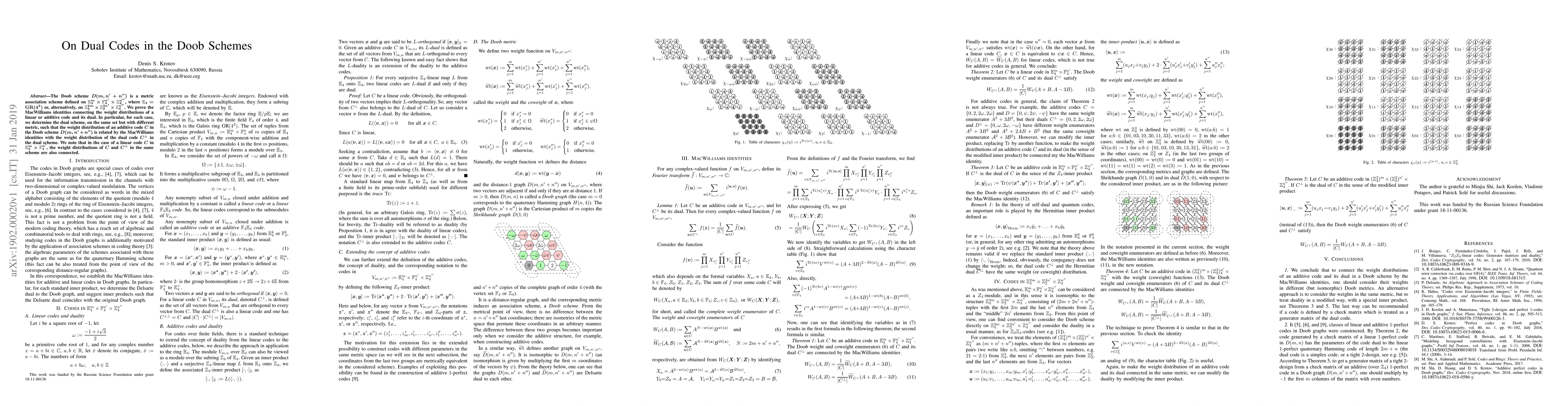 This paper proves MacWilliams identities connecting weight distributions of linear/additive codes in Doob schemes to their duals in different metric schemes, enabling the study of duality properties and code relationships.