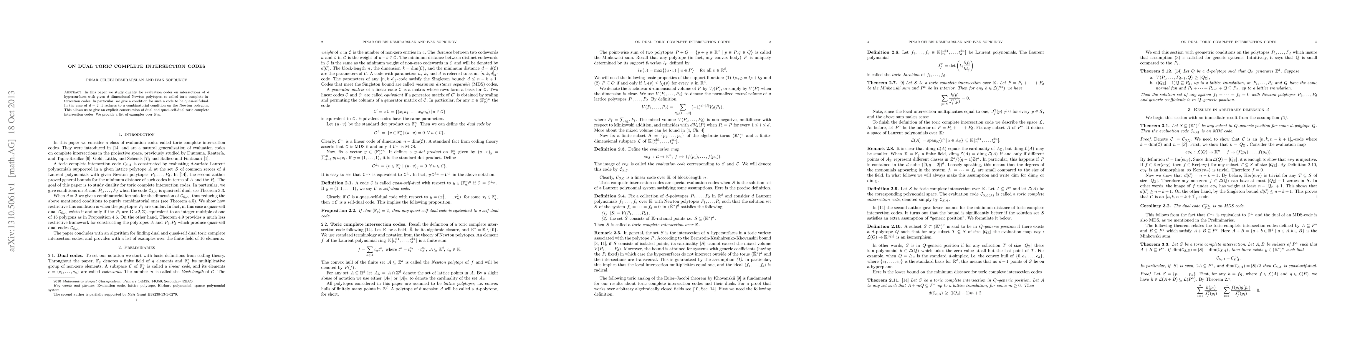 This paper explores duality conditions for toric complete intersection codes formed by evaluating codes on intersections of d hypersurfaces, presenting a quasi-self-duality condition and an explicit construction method. For d=2, the condition simplifies to a combinatorial check on Newton polygons, illustrated with examples over a field of 16 elements.