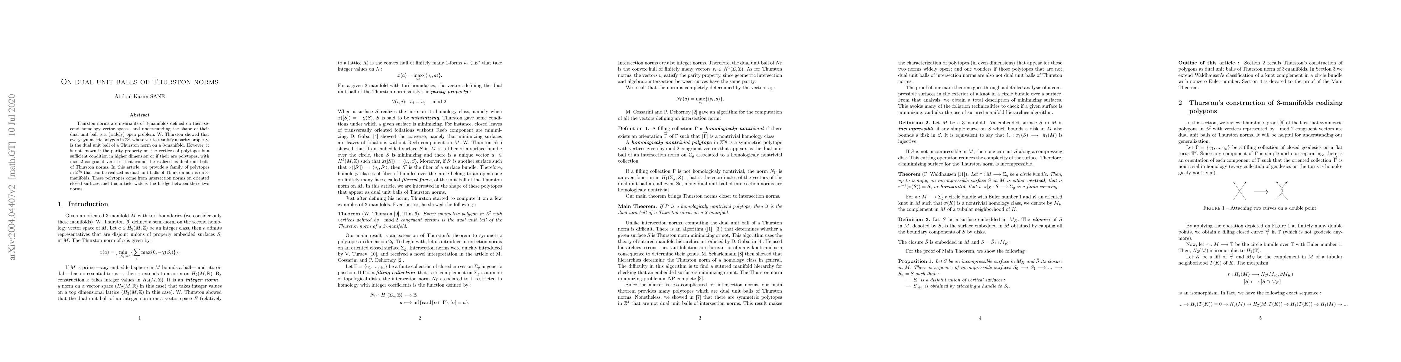 This paper explores the dual unit balls of Thurston norms on 3-manifolds, showing that certain symmetric polygons in Z^2 can represent these dual unit balls. It provides a family of such polytopes in Z^2g derived from intersection norms on oriented closed surfaces, thus expanding the connection between Thurston norms and intersection norms.