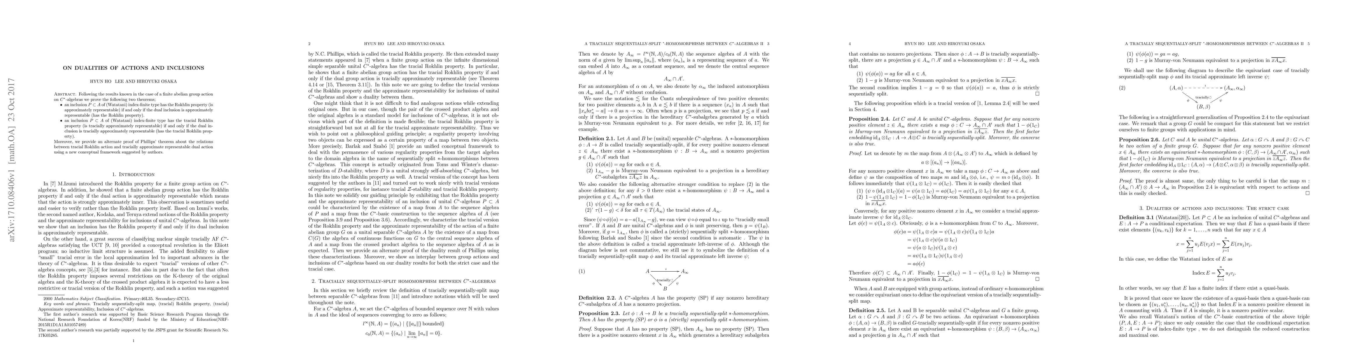 Following the results known in the case of a finite abelian group action on $C\sp*$-algebras we prove the following two theorems; 1. an inclusion $P\subset A$ of (Watatani) index-finite type has the Rokhlin property (is approximately representable) if and only if the dual inclusion is approximately representable (has the Rokhlin property). 2. an inclusion $P\subset A$ of (Watatani) index-finite type has the tracial Rokhlin property (is tracially approximately representable) if and only if the dual inclusion is tracially approximately representable (has the tracial Rokhlin property). Moreover, we provide an alternate proof of Phillips' theorem about the relations between tracial Rokhlin action and tracially approximate representable dual action using a new conceptual framework suggested by authors.