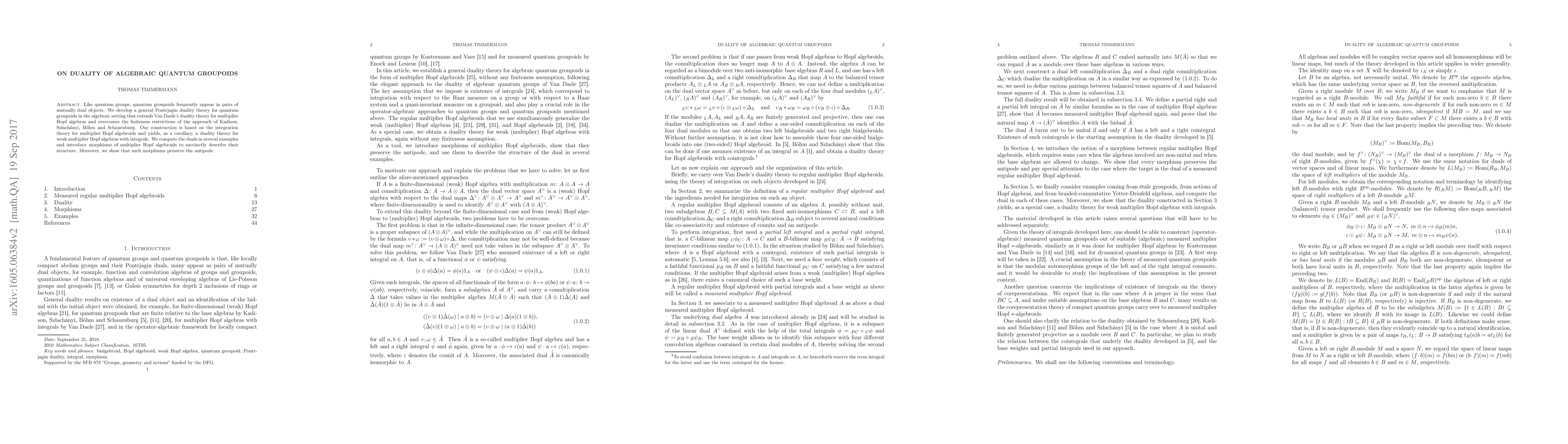 Like quantum groups, quantum groupoids frequently appear in pairs of mutually dual objects. We develop a general Pontrjagin duality theory for quantum groupoids in the algebraic setting that extends Van Daele's duality theory for multiplier Hopf algebras and overcomes the finiteness restrictions of the approach of Kadison, Szlach\'anyi, B\"ohm and Schauenburg. Our construction is based on the integration theory for multiplier Hopf algebroids and yields, as a corollary, a duality theory for weak multiplier Hopf algebras with integrals. We compute the duals in several examples and introduce morphisms of multiplier Hopf algebroids to succinctly describe their structure. Moreover, we show that such morphisms preserve the antipode.