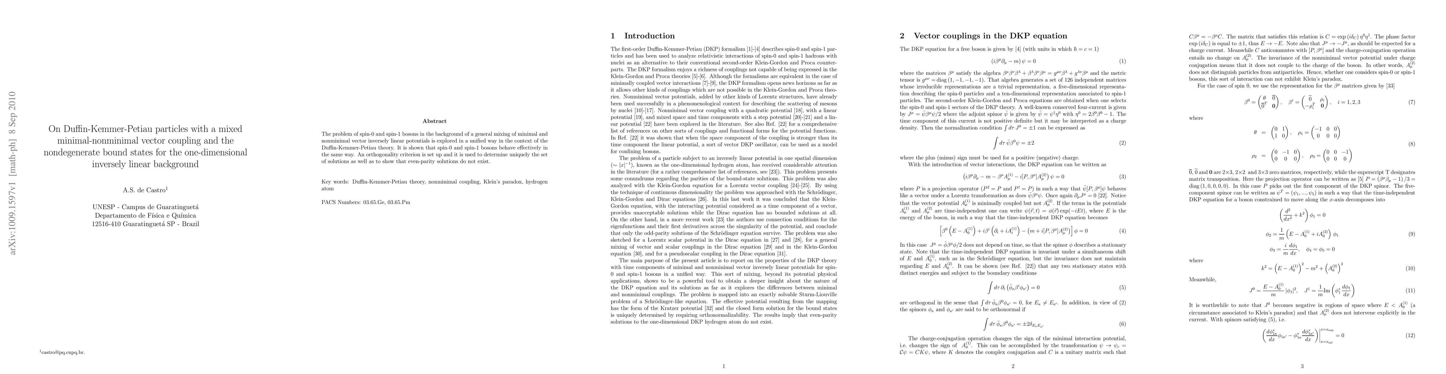 This paper investigates spin-0 and spin-1 bosons under a mixed minimal-nonminimal vector inversely linear potential using Duffin-Kemmer-Petiau theory, revealing their similar behavior and establishing an orthogonality criterion that excludes even-parity solutions.