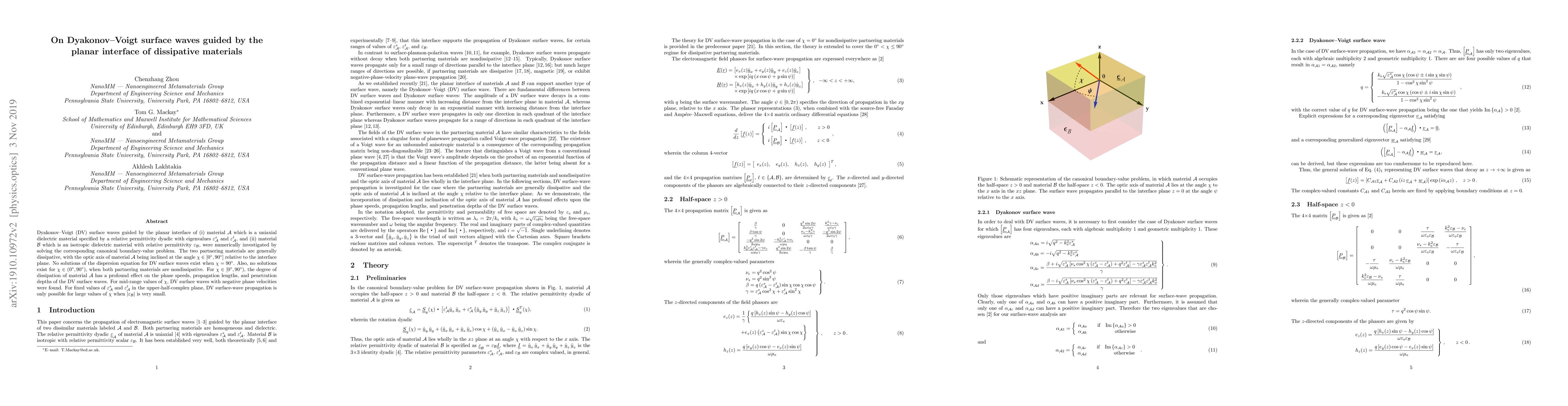 This paper investigates Dyakonov-Voigt surface waves guided by the planar interface of a uniaxial dielectric material $A$ and an isotropic dielectric material $B$, focusing on the effects of dissipation. It finds that wave propagation is influenced by the angle $\chi$ of the optic axis and the relative permittivity of material $B$, with negative phase velocities observed for mid-range $\chi$ values.