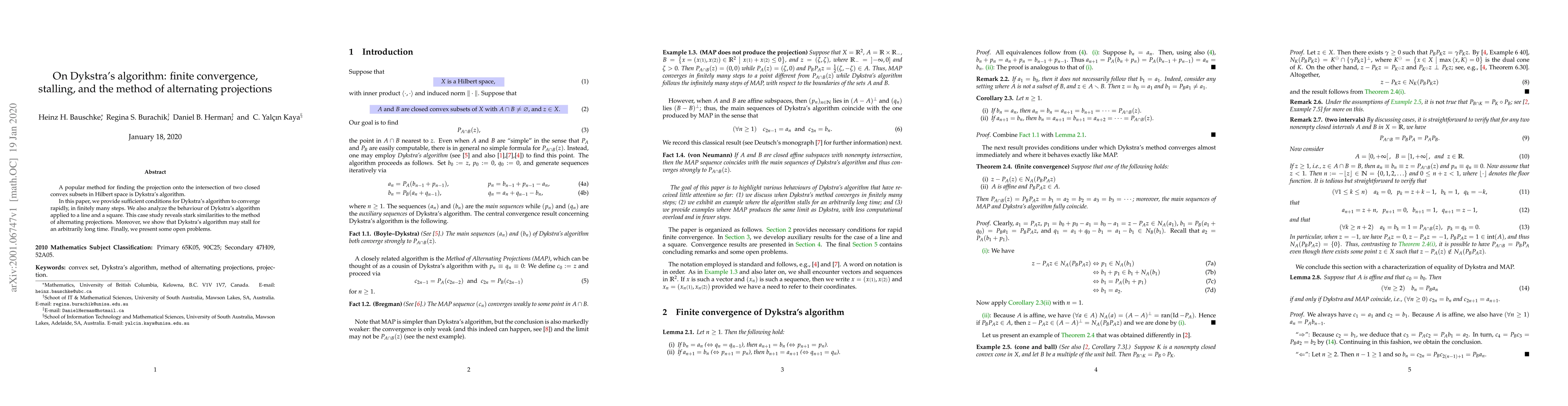 This paper examines Dykstra's algorithm for projecting onto the intersection of two closed convex sets in Hilbert space, providing conditions for finite convergence and analyzing its behavior, including potential stalling. It also draws parallels between Dykstra's algorithm and the method of alternating projections.