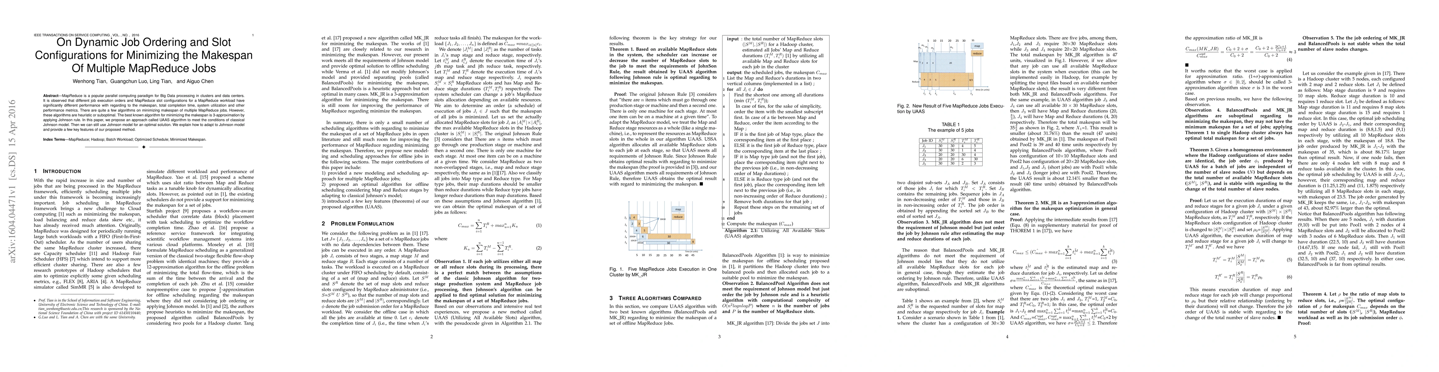 MapReduce is a popular parallel computing paradigm for Big Data processing in clusters and data centers. It is observed that different job execution orders and MapReduce slot configurations for a MapReduce workload have significantly different performance with regarding to the makespan, total completion time, system utilization and other performance metrics. There are quite a few algorithms on minimizing makespan of multiple MapReduce jobs. However, these algorithms are heuristic or suboptimal. The best known algorithm for minimizing the makespan is 3-approximation by applying Johnson rule. In this paper, we propose an approach called UAAS algorithm to meet the conditions of classical Johnson model. Then we can still use Johnson model for an optimal solution. We explain how to adapt to Johnson model and provide a few key features of our proposed method.