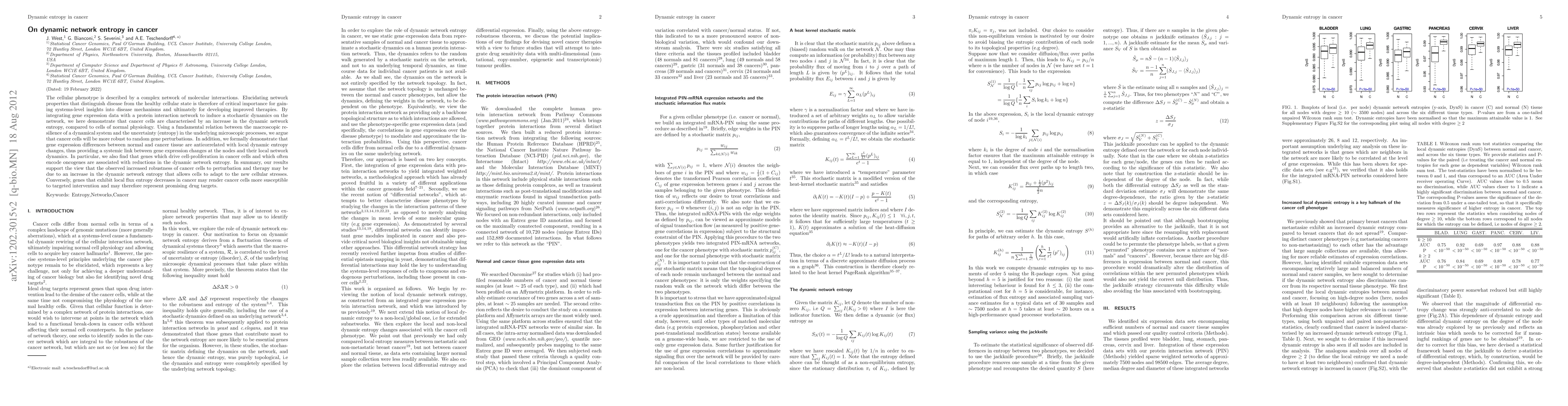 The cellular phenotype is described by a complex network of molecular interactions. Elucidating network properties that distinguish disease from the healthy cellular state is therefore of critical importance for gaining systems-level insights into disease mechanisms and ultimately for developing improved therapies. By integrating gene expression data with a protein interaction network to induce a stochastic dynamics on the network, we here demonstrate that cancer cells are characterised by an increase in the dynamic network entropy, compared to cells of normal physiology. Using a fundamental relation between the macroscopic resilience of a dynamical system and the uncertainty (entropy) in the underlying microscopic processes, we argue that cancer cells will be more robust to random gene perturbations. In addition, we formally demonstrate that gene expression differences between normal and cancer tissue are anticorrelated with local dynamic entropy changes, thus providing a systemic link between gene expression changes at the nodes and their local network dynamics. In particular, we also find that genes which drive cell-proliferation in cancer cells and which often encode oncogenes are associated with reductions in the dynamic network entropy. In summary, our results support the view that the observed increased robustness of cancer cells to perturbation and therapy may be due to an increase in the dynamic network entropy that allows cells to adapt to the new cellular stresses. Conversely, genes that exhibit local flux entropy decreases in cancer may render cancer cells more susceptible to targeted intervention and may therefore represent promising drug targets.