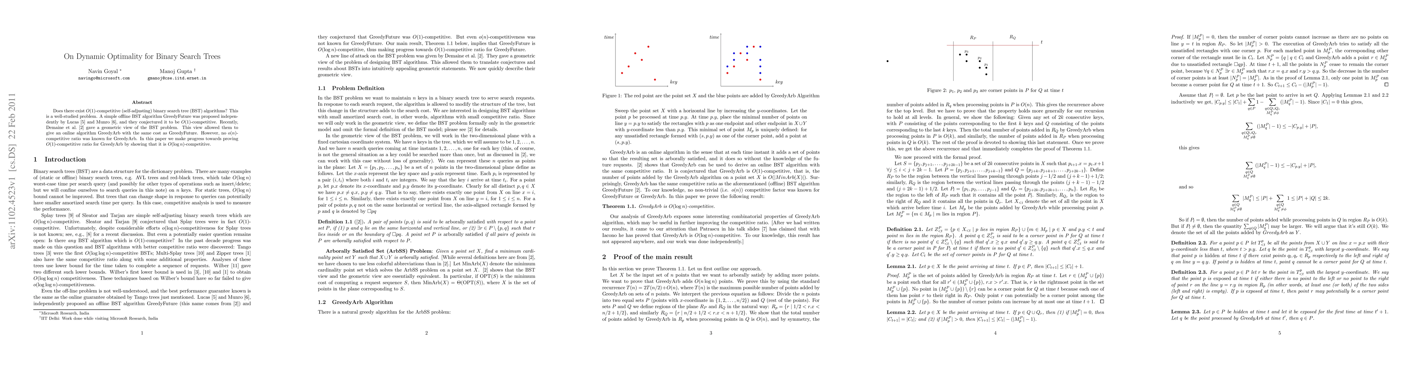 This paper investigates the optimality of online binary search tree algorithms, specifically focusing on the GreedyArb algorithm. It demonstrates that GreedyArb achieves an O(log n)-competitive ratio, making progress towards proving its conjectured O(1)-competitiveness.