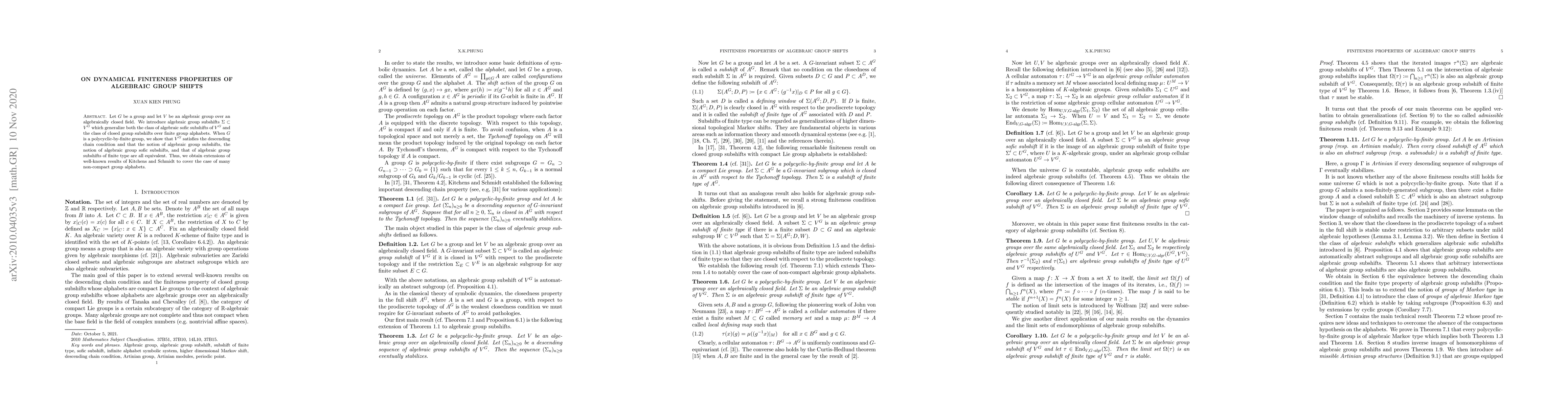 This research contributes to our understanding of algebraic group shifts and their properties, with potential applications in theoretical computer science and mathematics.