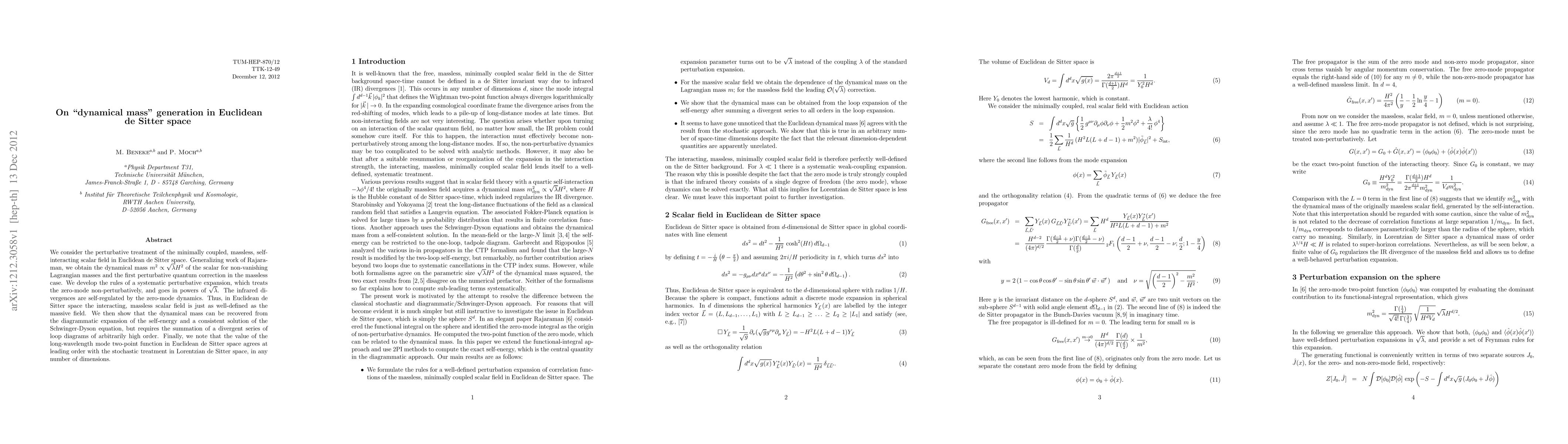 This paper investigates the dynamical mass generation in Euclidean de Sitter space for a minimally coupled, massless scalar field. It finds that the scalar field acquires a mass proportional to sqrt(λ)H², with infrared divergences regulated by zero-mode dynamics, ensuring the field's well-definedness akin to massive fields.