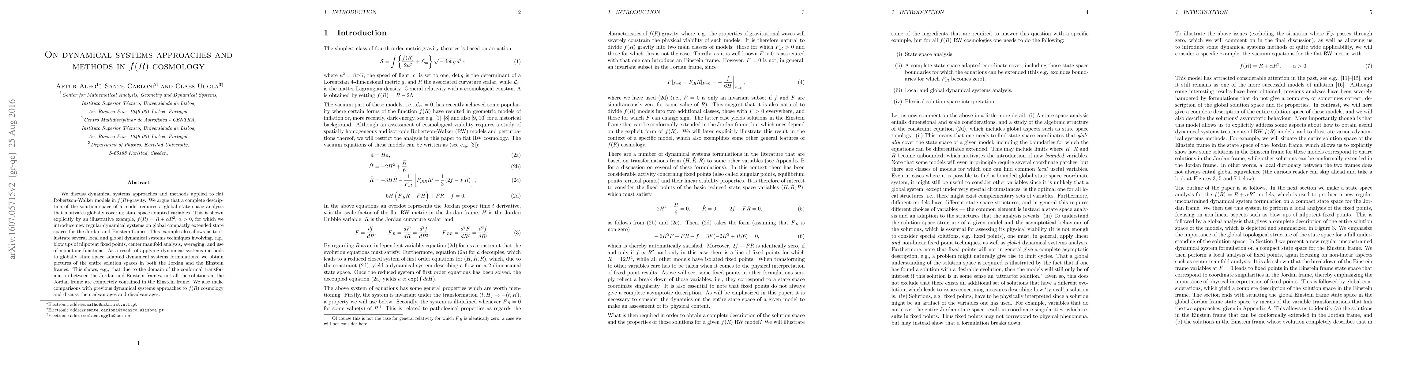We discuss dynamical systems approaches and methods applied to flat Robertson-Walker models in $f(R)$-gravity. We argue that a complete description of the solution space of a model requires a global state space analysis that motivates globally covering state space adapted variables. This is shown explicitly by an illustrative example, $f(R) = R + \alpha R^2$, $\alpha > 0$, for which we introduce new regular dynamical systems on global compactly extended state spaces for the Jordan and Einstein frames. This example also allows us to illustrate several local and global dynamical systems techniques involving, e.g., blow ups of nilpotent fixed points, center manifold analysis, averaging, and use of monotone functions. As a result of applying dynamical systems methods to globally state space adapted dynamical systems formulations, we obtain pictures of the entire solution spaces in both the Jordan and the Einstein frames. This shows, e.g., that due to the domain of the conformal transformation between the Jordan and Einstein frames, not all the solutions in the Jordan frame are completely contained in the Einstein frame. We also make comparisons with previous dynamical systems approaches to $f(R)$ cosmology and discuss their advantages and disadvantages.