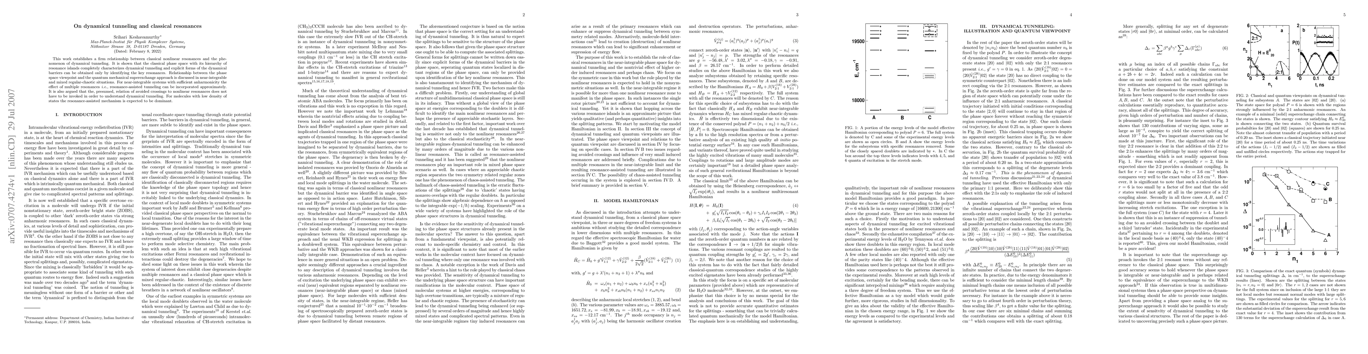 This paper connects classical nonlinear resonances with dynamical tunneling, demonstrating that classical phase space and resonance islands characterize tunneling, with explicit dynamical barriers identified through key resonances. It also discusses the relationship between phase space and quantum superexchange, arguing that resonance-assisted tunneling is dominant in systems with low density of states.