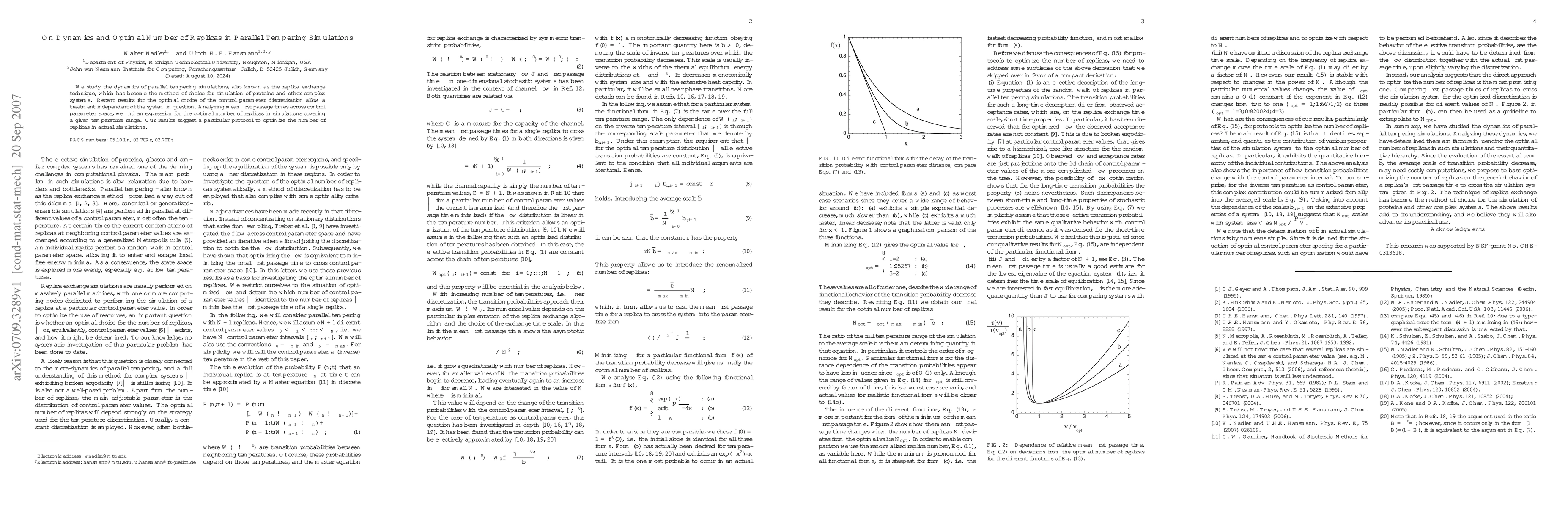 We study the dynamics of parallel tempering simulations, also known as the replica exchange technique, which has become the method of choice for simulation of proteins and other complex systems. Recent results for the optimal choice of the control parameter discretization allow a treatment independent of the system in question. Analyzing mean first passage times across control parameter space, we find an expression for the optimal number of replicas in simulations covering a given temperature range. Our results suggest a particular protocol to optimize the number of replicas in actual simulations.