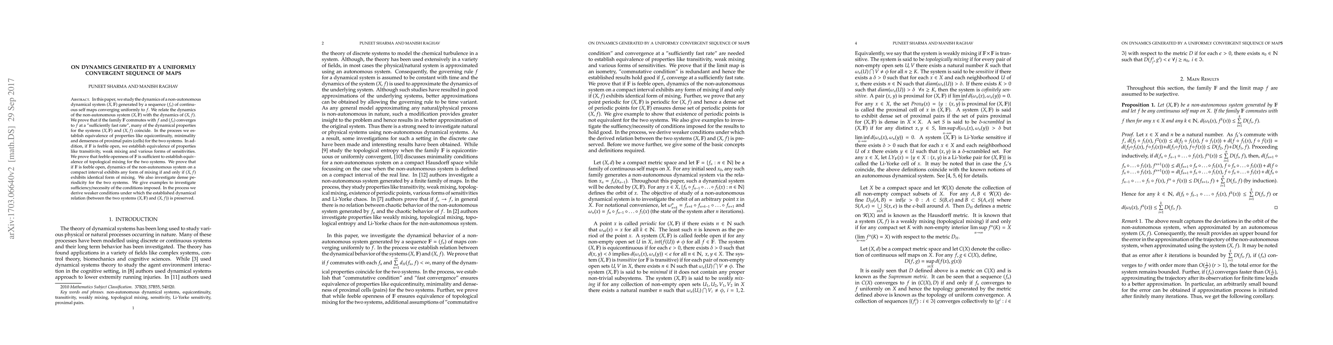 This paper examines the dynamics of a non-autonomous system generated by a uniformly convergent sequence of maps, showing that many dynamical properties of the original system are preserved if the sequence converges sufficiently fast and the system's family of maps commutes with the limit map. It establishes equivalence of properties like equicontinuity, minimality, and transitivity between the non-autonomous and autonomous systems.