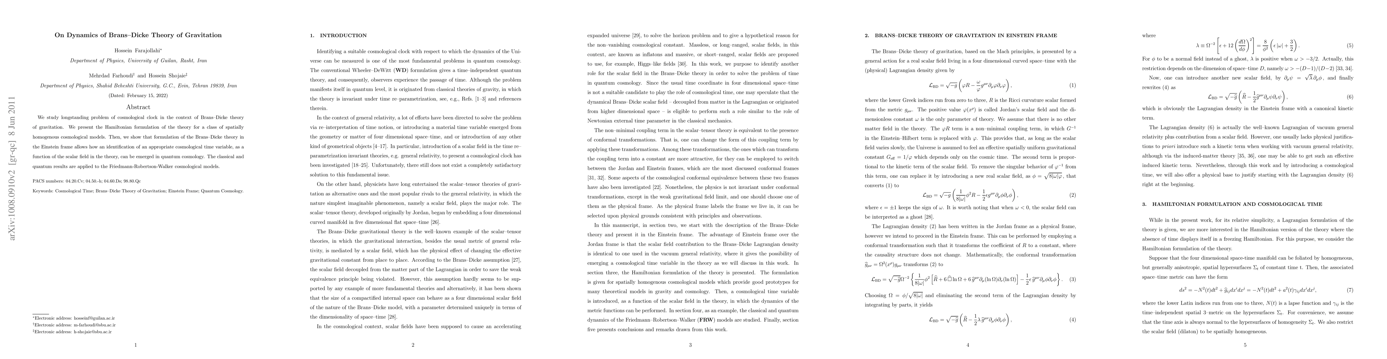 This paper investigates the dynamics of Brans-Dicke theory in the context of cosmological time, presenting a Hamiltonian formulation for spatially homogeneous models. It demonstrates how the Einstein frame formulation facilitates the identification of a cosmological time variable in quantum cosmology, applying these insights to Friedmann-Robertson-Walker models.