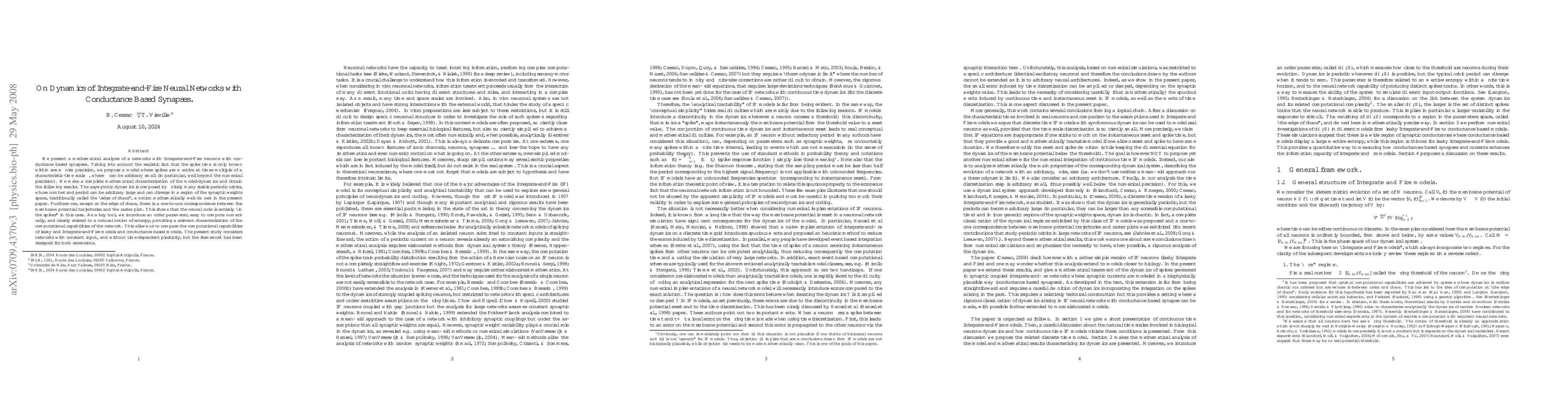 This paper mathematically analyzes Integrate-and-Fire neural networks with adaptive conductance synapses, revealing that the dynamics consist of stable periodic orbits whose number and period can diverge. It introduces an order parameter to characterize the computational capabilities of the network, comparing leaky and Integrate-and-Fire models.