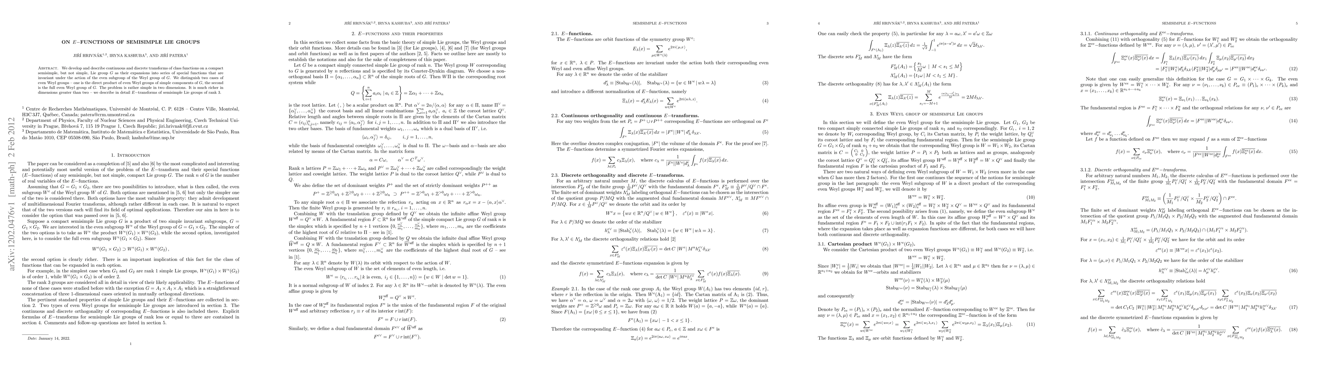 We develop and describe continuous and discrete transforms of class functions on a compact semisimple, but not simple, Lie group $G$ as their expansions into series of special functions that are invariant under the action of the even subgroup of the Weyl group of $G$. We distinguish two cases of even Weyl groups -- one is the direct product of even Weyl groups of simple components of $G$, the second is the full even Weyl group of $G$. The problem is rather simple in two dimensions. It is much richer in dimensions greater than two -- we describe in detail $E-$transforms of semisimple Lie groups of rank 3.
