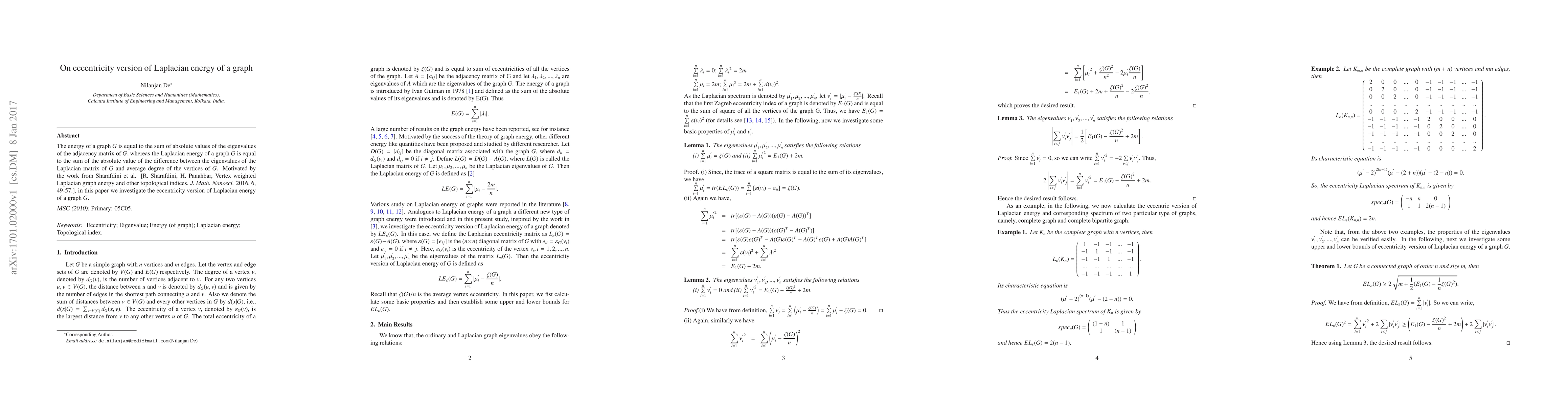 The energy of a graph G is equal to the sum of absolute values of the eigenvalues of the adjacency matrix of G, whereas the Laplacian energy of a graph G is equal to the sum of the absolute value of the difference between the eigenvalues of the Laplacian matrix of G and average degree of the vertices of G. Motivated by the work from Sharafdini et al. [R. Sharafdini, H. Panahbar, Vertex weighted Laplacian graph energy and other topological indices. J. Math. Nanosci. 2016, 6, 49-57.], in this paper we investigate the eccentricity version of Laplacian energy of a graph G.