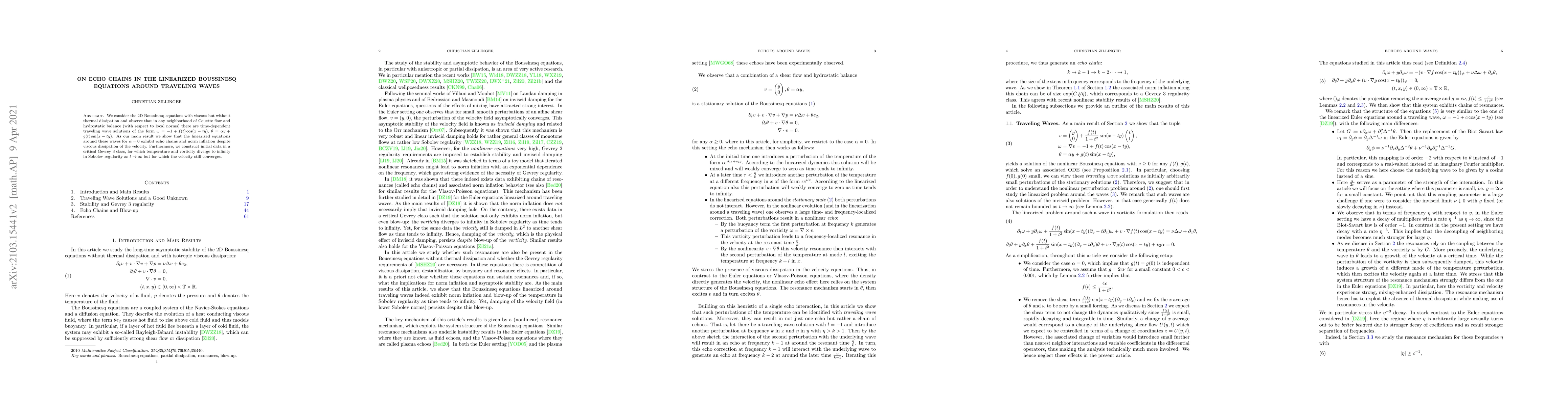 Researchers find that even with viscous dissipation, 2D Boussinesq equations can exhibit echo chains and norm inflation around traveling waves, leading to infinite temperature and vorticity divergence.
