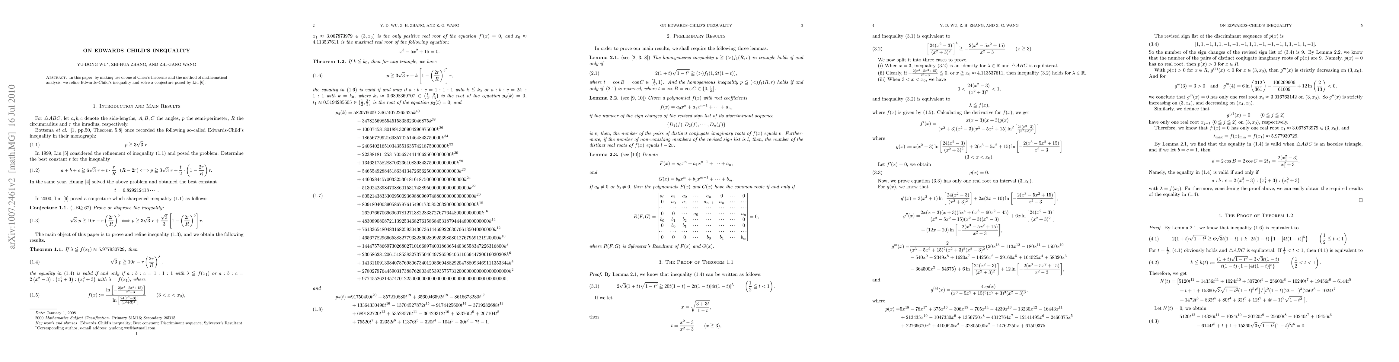 Summary: This paper refines Edwards-Child's inequality using Chen's theorem and mathematical analysis, ultimately solving a conjecture proposed by Liu. The research provides a new perspective on the inequality through advanced mathematical techniques.