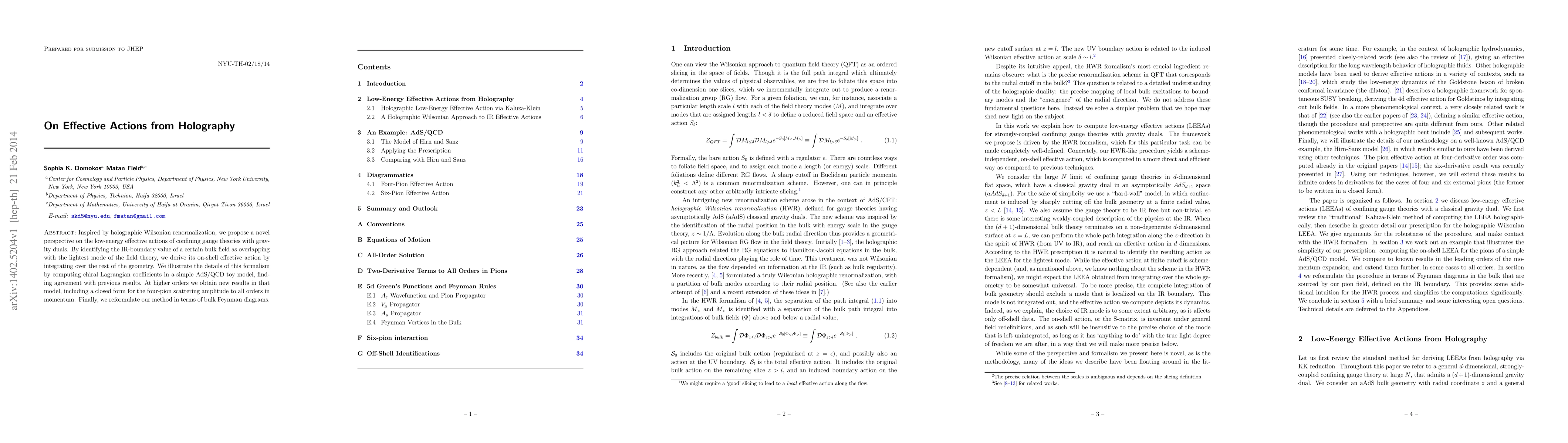 Inspired by holographic Wilsonian renormalization, we propose a novel perspective on the low-energy effective actions of confining gauge theories with gravity duals. By identifying the IR-boundary value of a certain bulk field as overlapping with the lightest mode of the field theory, we derive its on-shell effective action by integrating over the rest of the geometry. We illustrate the details of this formalism by computing chiral Lagrangian coefficients in a simple AdS/QCD toy model, finding agreement with previous results. At higher orders we obtain new results in that model, including a closed form for the four-pion scattering amplitude to all orders in momentum. Finally, we reformulate our method in terms of bulk Feynman diagrams.